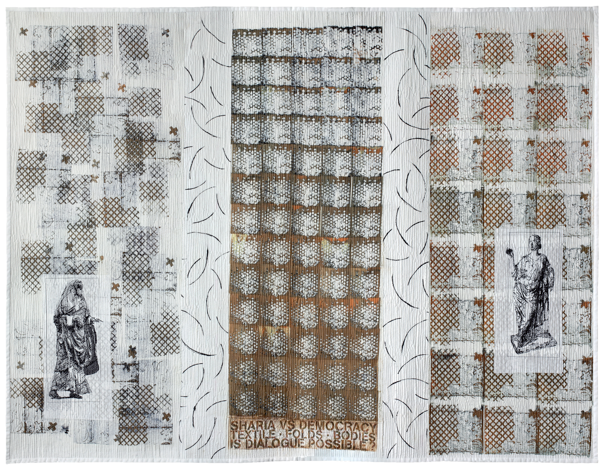 Browse the Collection Dialogue 2 Charlotte Yde Size 55 in x 74 in (140 cm x 188 cm) Year 2010 Related Publications Art Quilts Unfolding Price $0.00 Buy Now >> Materials Cotton Techniques Deconstructed screen printed, block printed. Digitally programmed and free machine embroidered, hand and machine quilted