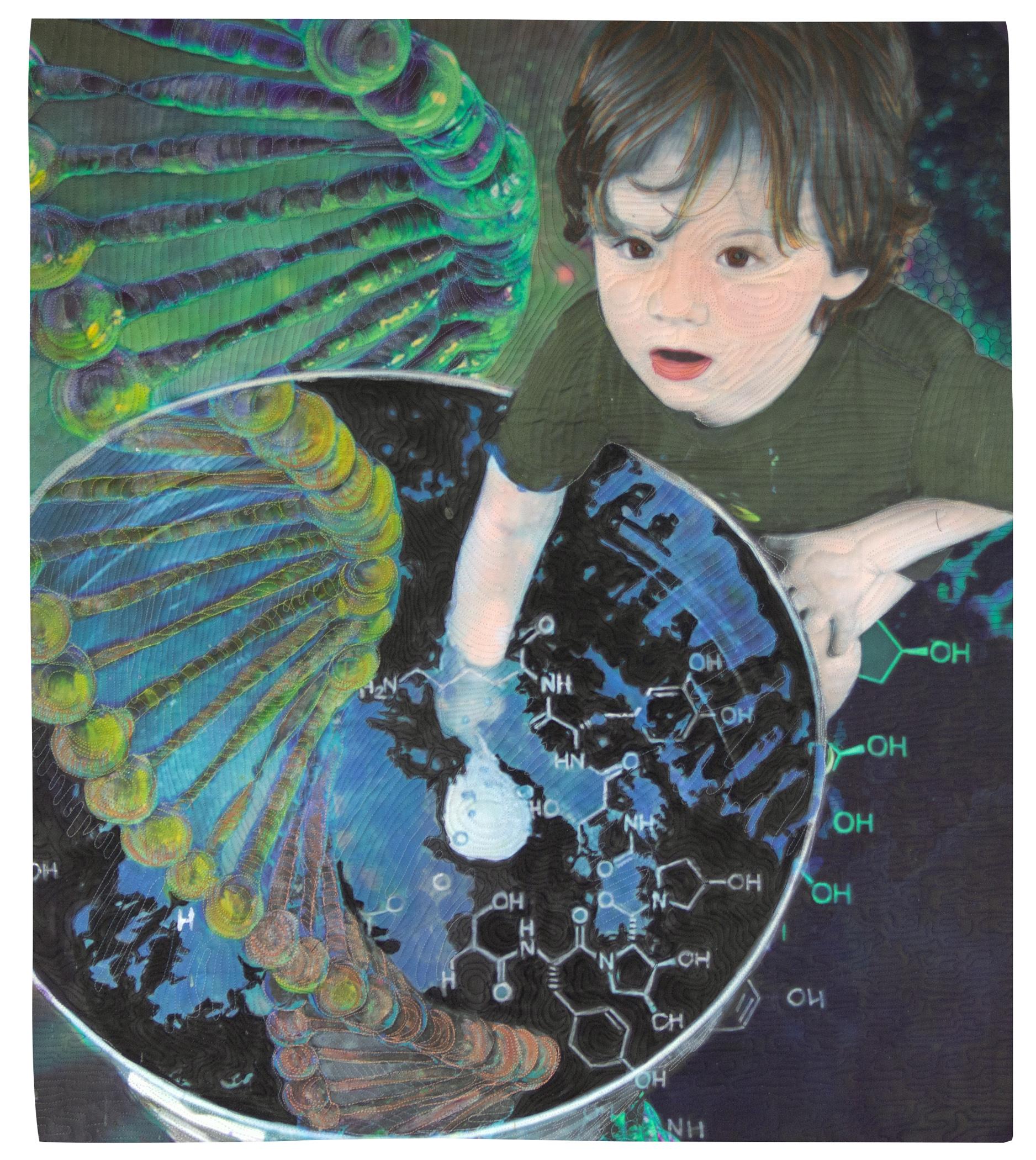 DNA is the carrier of genetic information. This portrait of my grandson playing with a tub of water collides with the image of the double helix which carries genetic instructions. Deoxyribonucleic acid is the scientific name of the molecule which determines the development, function, growth, and reproduction of all organisms. It’s the unseen roadmap of human development. As many grandparents experience, I see so much of his mother in this little boy. Everything from his physical traits to his intellectual curiosity. These observations confirm the role of that miracle of nature, DNA.