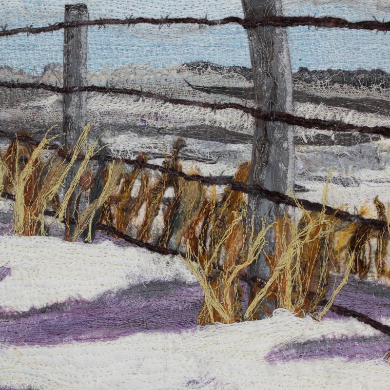 Dyed, painted, raw edge appliquéd, couched, free motion quilted