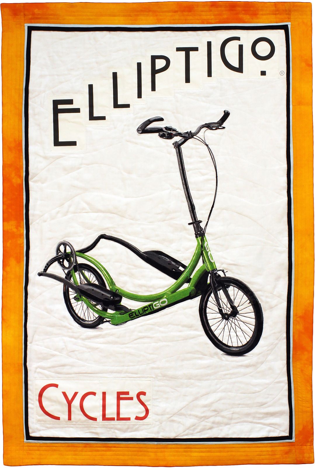 I love bikes. I used to cycle 100 miles a week, until I ruptured a disk. I can no longer ride the miles I once did. My stepdaughter works for Elliptigo, a company that makes an elliptical cycle, where you stand up instead of sitting on a seat. My poster is an advertisement for their bike, which I dream of owning one day.