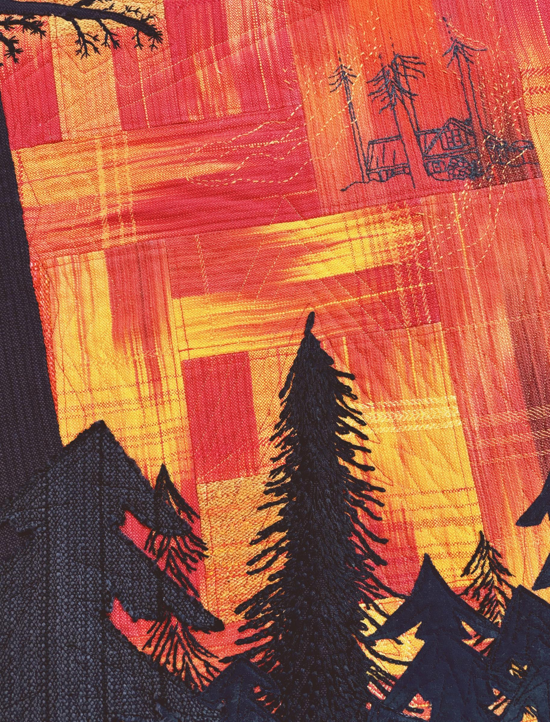Hand dyed, hand woven, hand and machine stitched, raw edge appliquéd