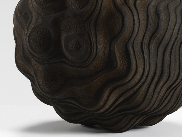 Sandblasting sequoia shows how the soft summer growth erodes at a different rate compared to its harder winter counterpart. The ridged and recessed results mirror the wood’s growth between seasons: summerfast, winter-slow. Both pieces are etched by time-grown and time-worn materiality. Cycles of organic growth and formal exploration here recall one of civilization’s oldest object forms, both used to contain and commemorate. Each vessel finds itself articulated in novel form, shaped unlike its predecessors in the studio, yet still spurred on by memory’s haptic suggestion.