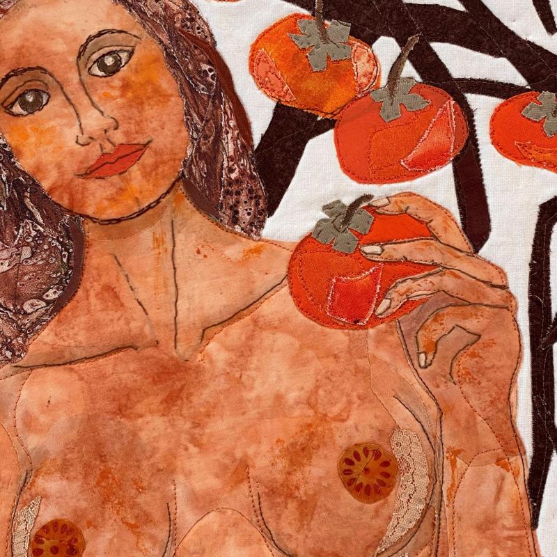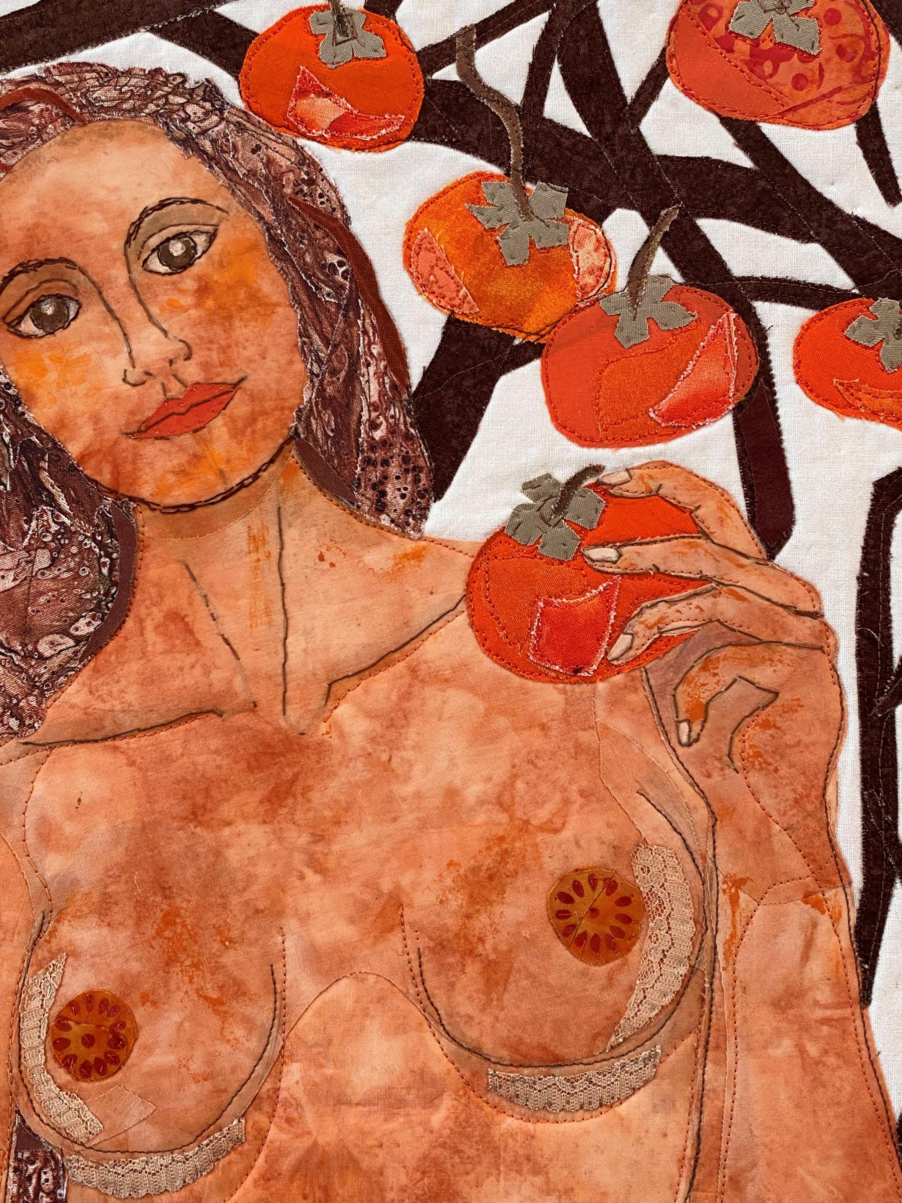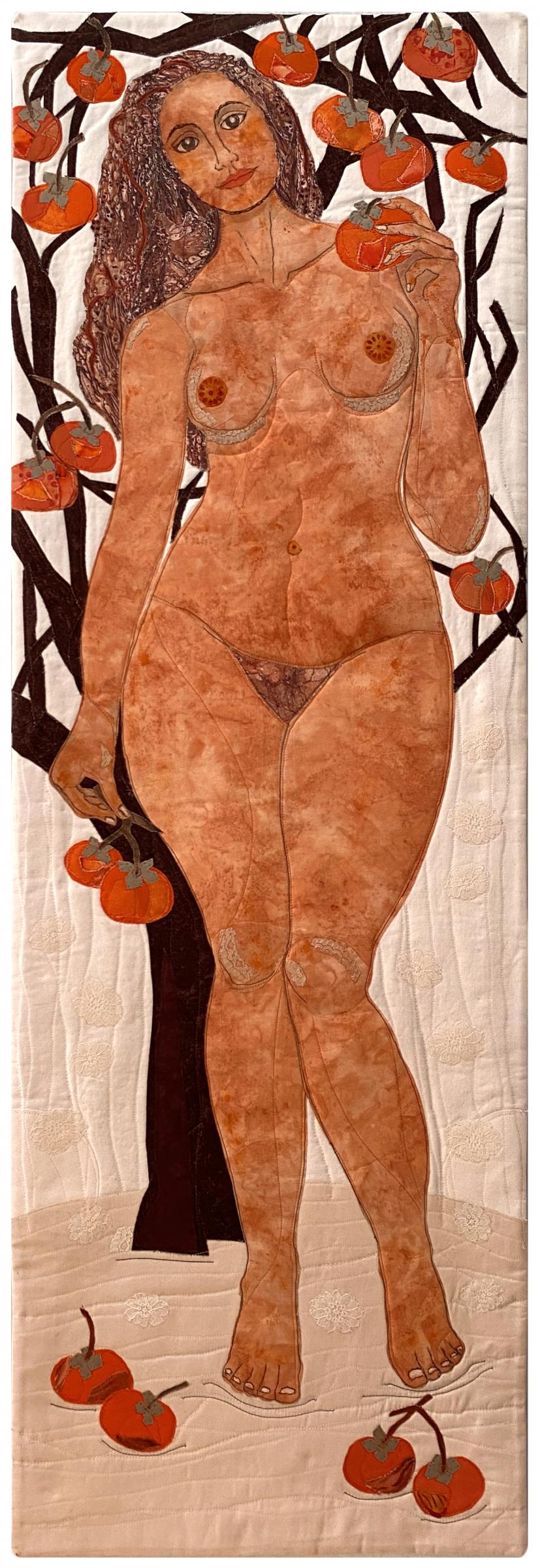 Eve in the Garden of Persimmons in Winter is a slight twist to the story of the temptation in the Garden of Eden. But her nude body is still very seductive. In her hand, she holds a ripe, bright orange persimmon and offers you a taste of the delicious fruit.