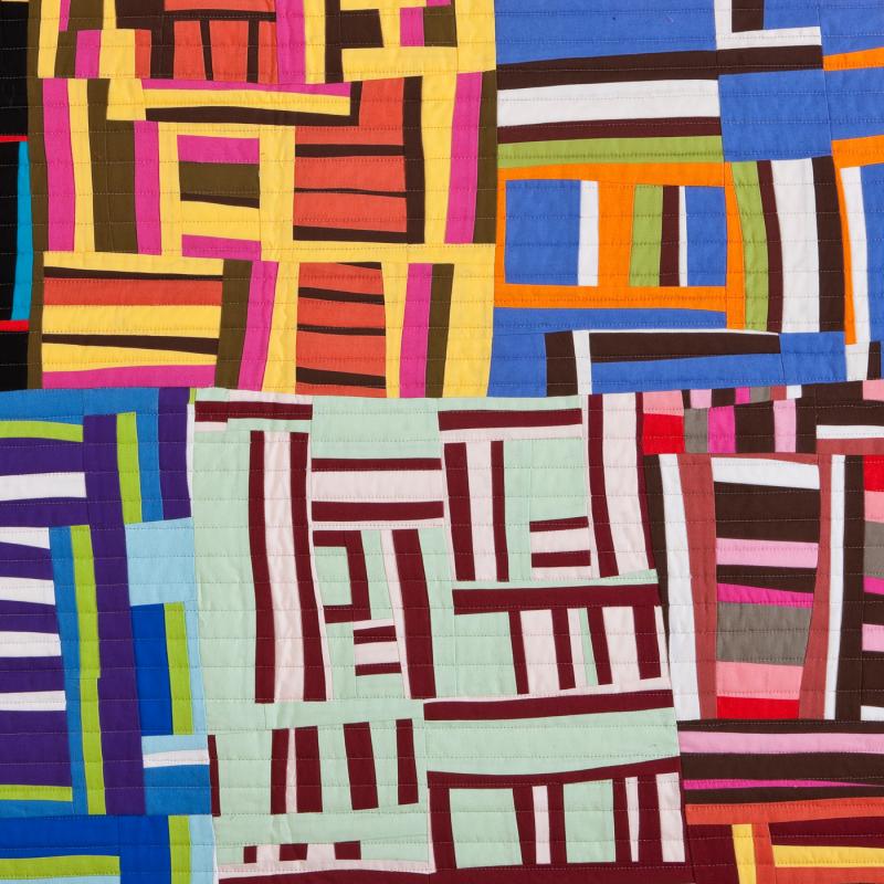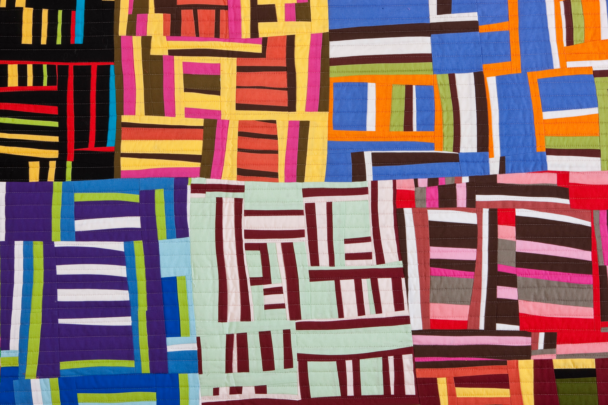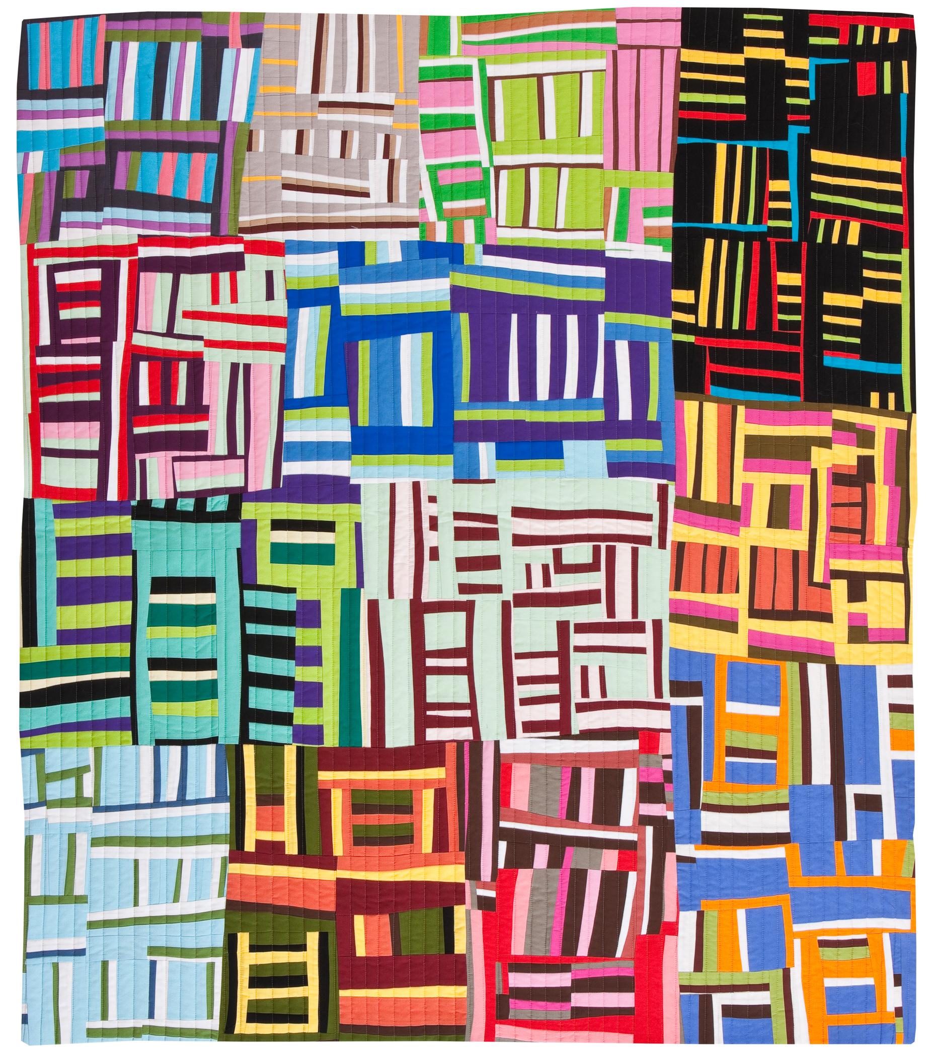 Fiber Optics represents the beginning of my obsession with creating and then deconstructing lines. Throughout the piecing of this quilt, my mind kept coming back to fiber optics and what they might look like if they were chopped up and reassembled into art.