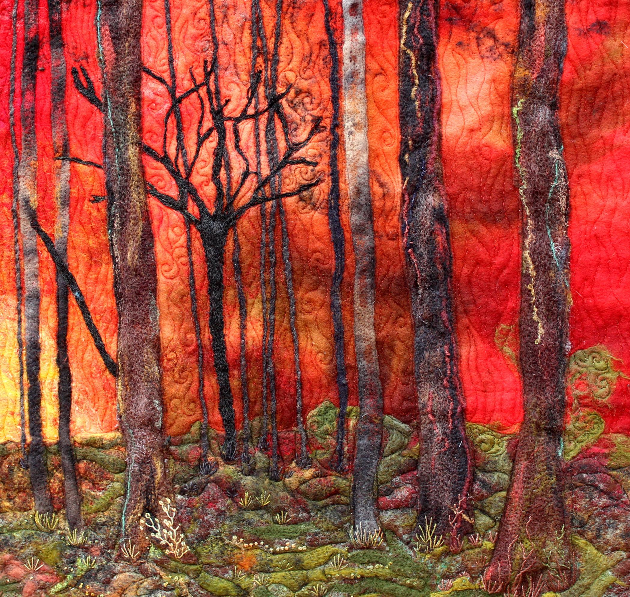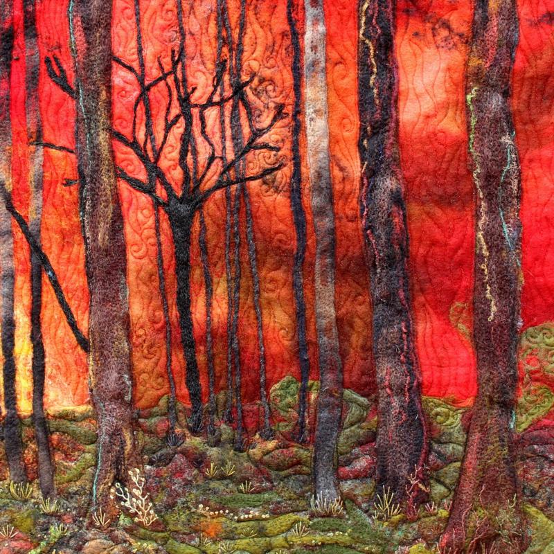 Browse the Collection Firelight Linda Steele Size 25 in x 38 in (64 cm x 97 cm) Year 2015 Gallery Impressions of Oceania From Around the World (SAQA Virtual Gallery) Price $0.00 Buy Now >> Every summer Australians dread the fire season that destroys properties, homes, and lives. Materials Wool, wool/poly batting, silk and cotton thread.