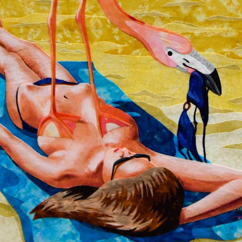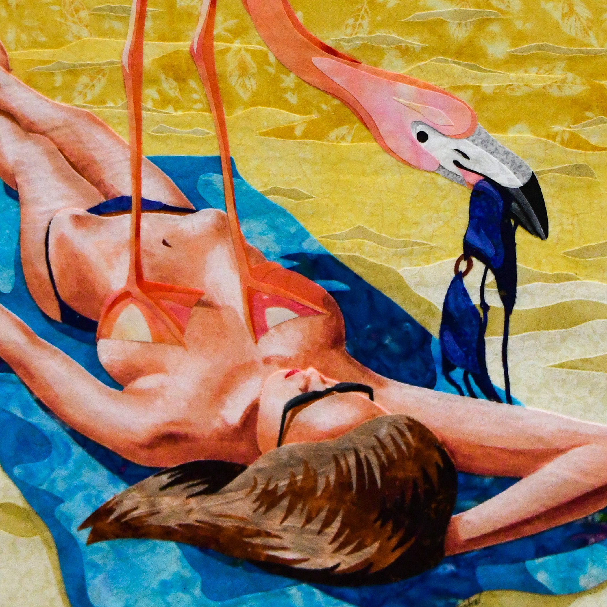 I had a silly idea of an animal version of "beach police", some critter whose job it was to keep Florida's beaches family-friendly. This flamingo fit the "bill" and is trying to get the sunbather to put her top back on while simultaneously covering up the scandalous areas.