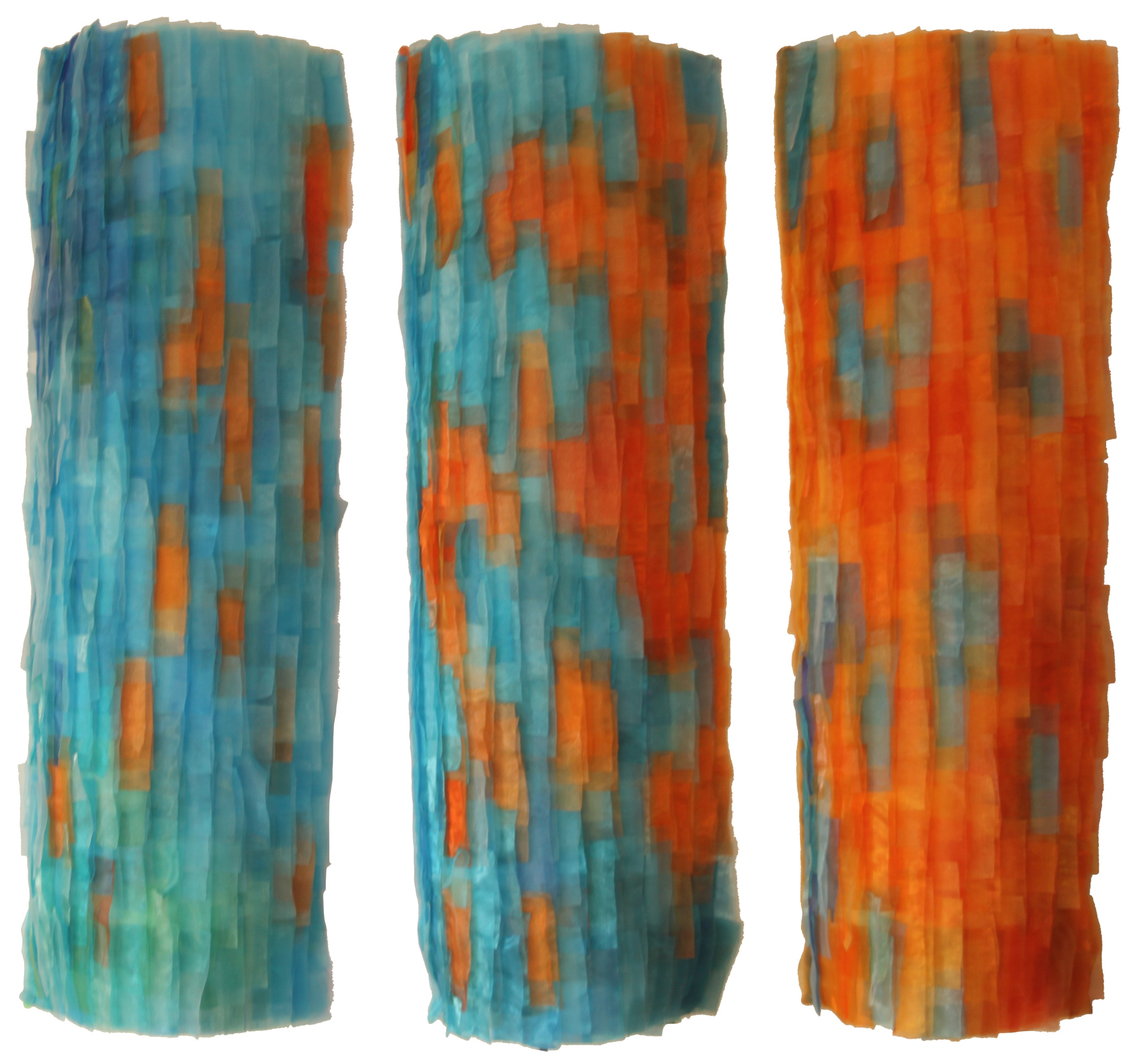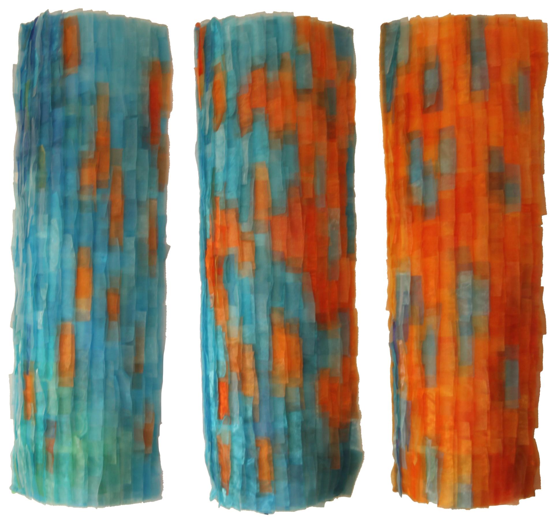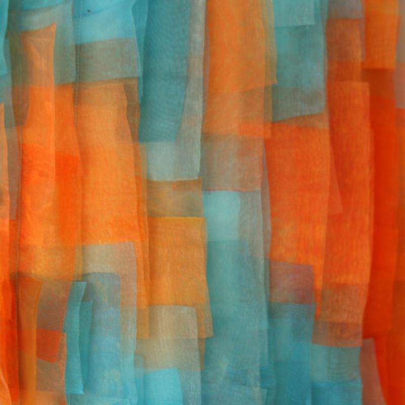 Creating this work was a form of meditation for me... Again and again cutting the same template out of two organza layers from different colours, then placing them row by row and thus letting my hands play with the transparency, the game, and the conversion of colours - a work that is laborious and fun as well.