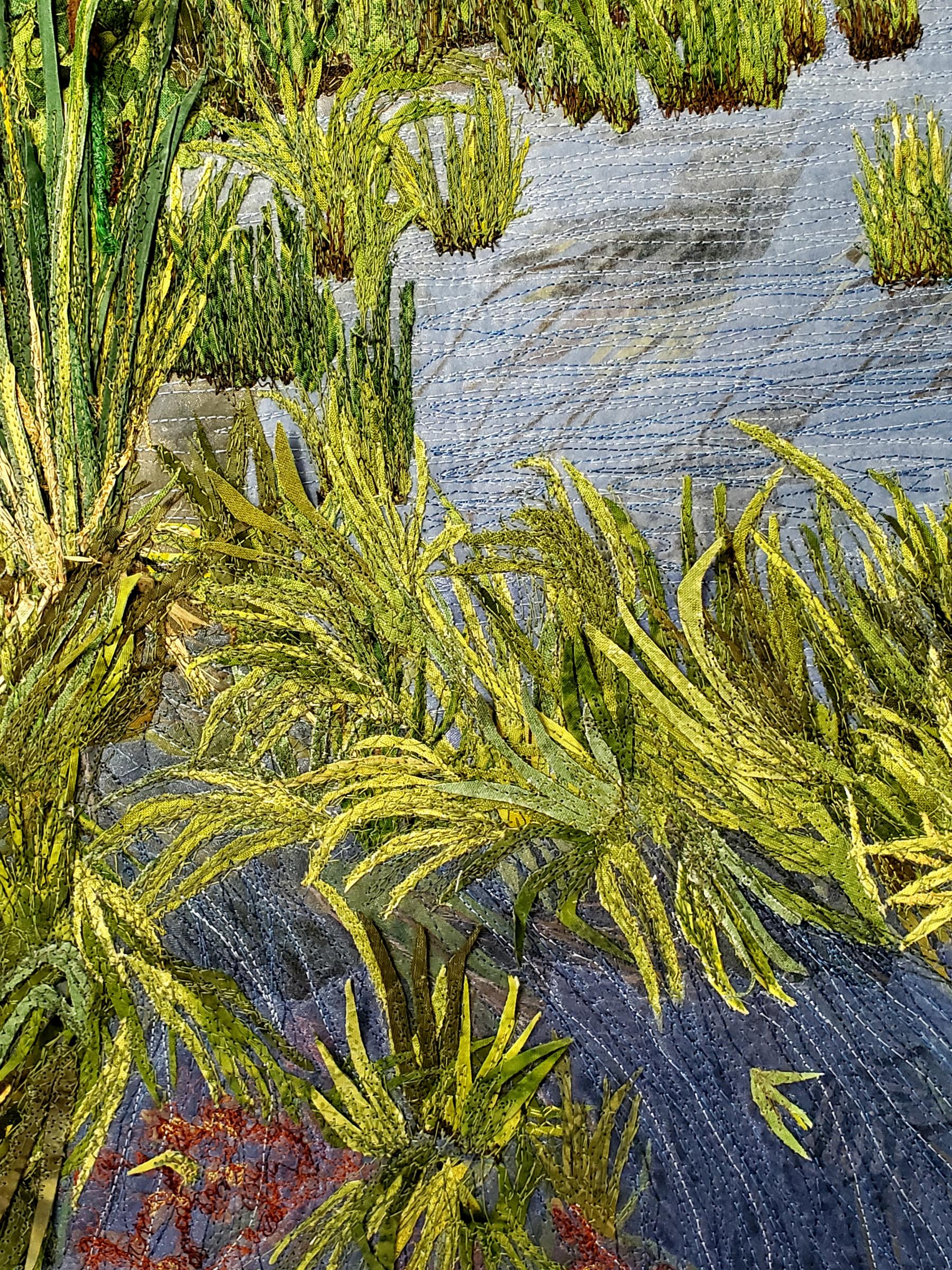 raw edge appliqué, fabric layering, couching