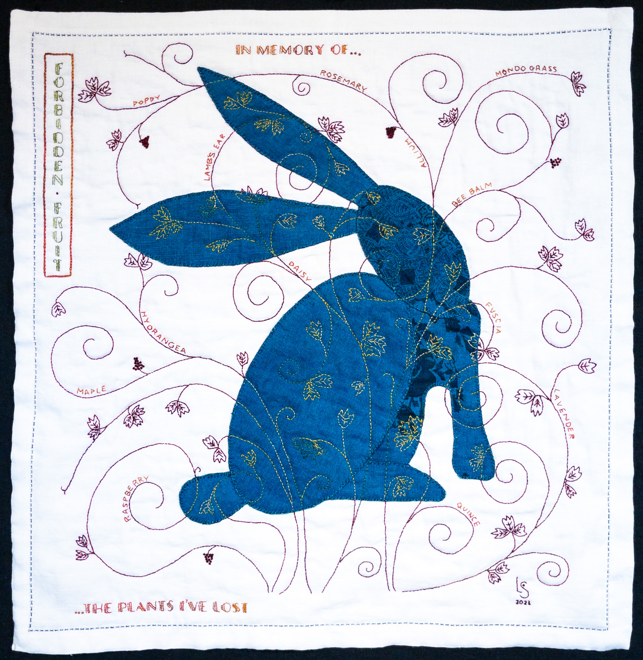 Rabbit Art Therapy Series - I have this constant inner struggle, as a gardener, about how to co-exist with our town’s wild domestic rabbits. This ongoing series depicts the various feelings I have about the rabbits—anger, frustration, admiration, and amazement at their audacity. This piece is dedicated to the many plants I’ve lost to the hungry bunnies. I no longer pay attention to those little tags on nursery plants that tell you it is rabbit- or deer-resistant. Lies! All lies!