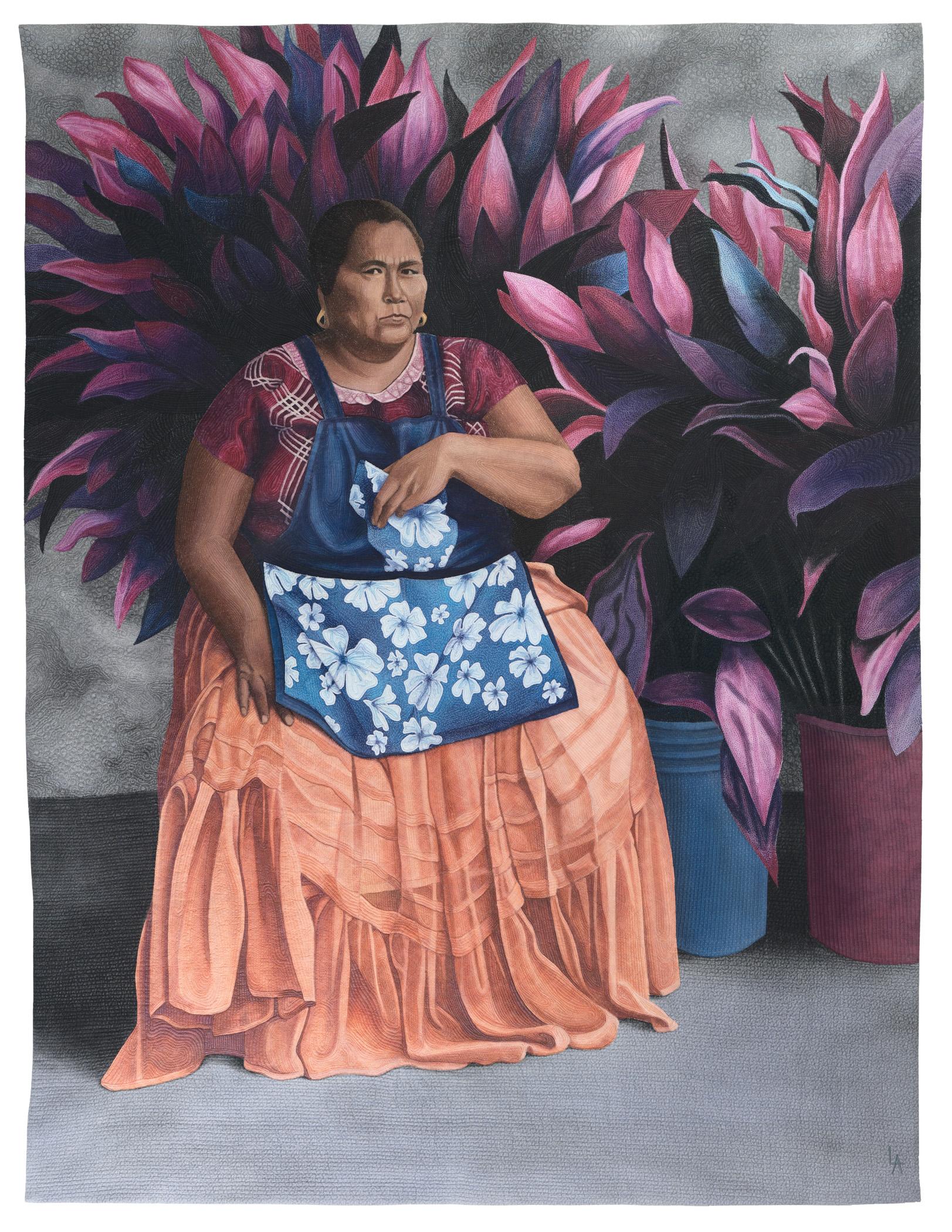 In a village marketplace outside of the city of Oaxaca, this woman is a person to be reckoned with. Her powerful and regal countenance is a challenge to anyone who might view her dismissively as she sells decorative leaves for Day of the Dead festivities. Her pride and dignity reign.