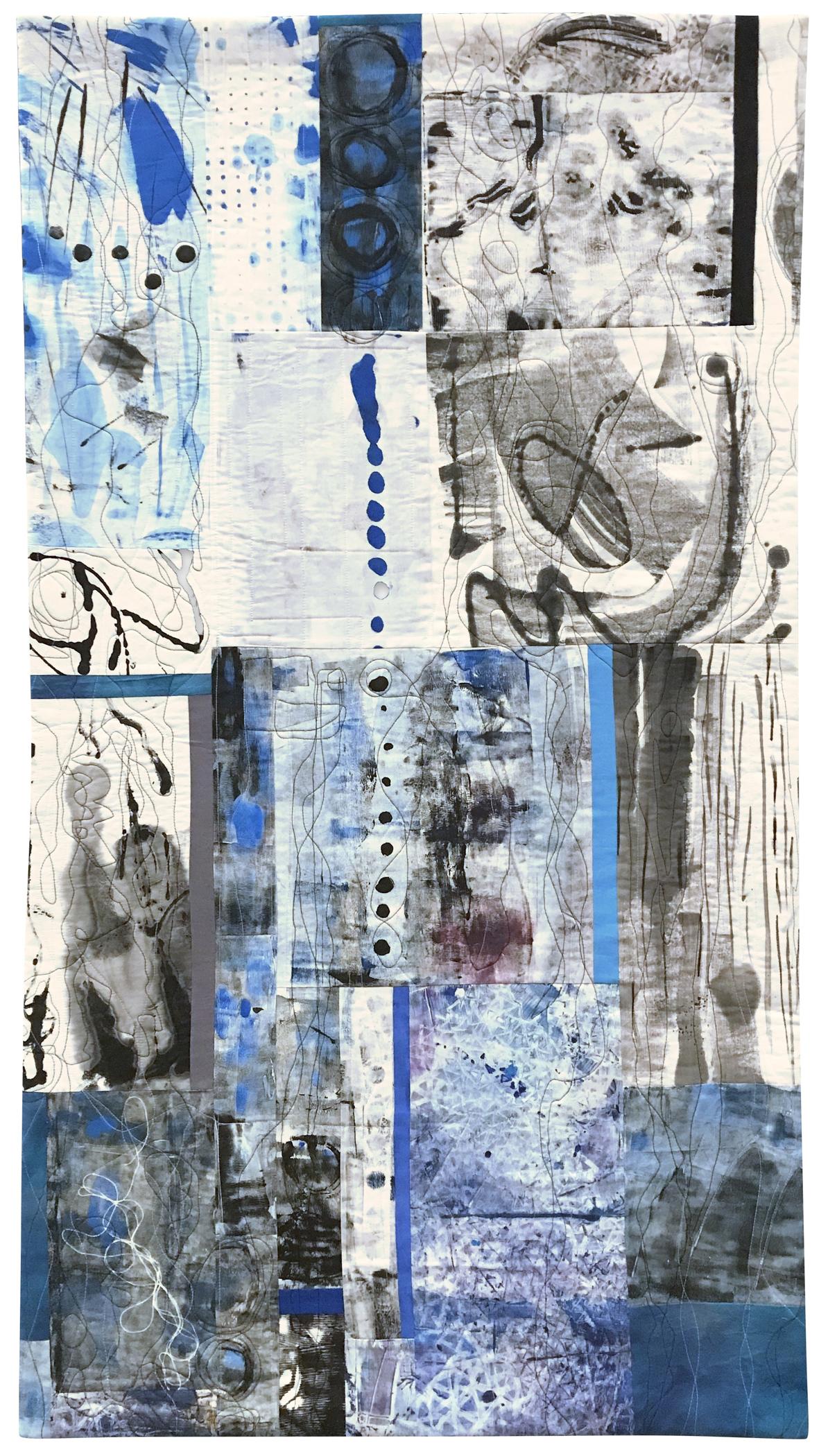 The serendipity of the gestural mark dictates my design and guides my composition. The energy of the paint landing on the fabric orders the direction of my initial design, allowing the arrangement to unfold. Sometimes the impromptu line is enough to ground my design. At other times, the challenge of incorporating a line of paint into a cohesive design motivates me.