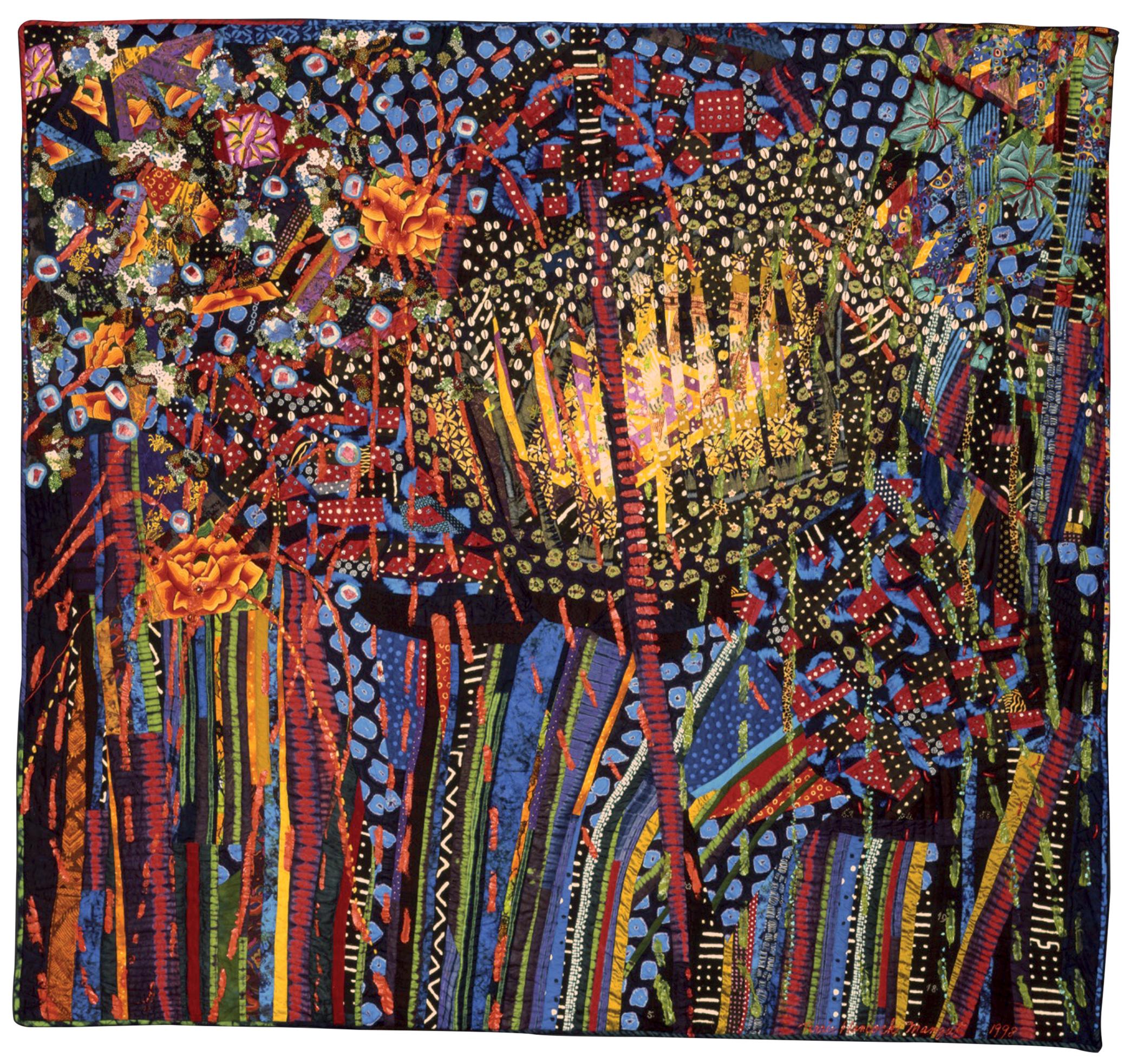 Machine pieced, hand beaded, painted, embroidered, and quilted