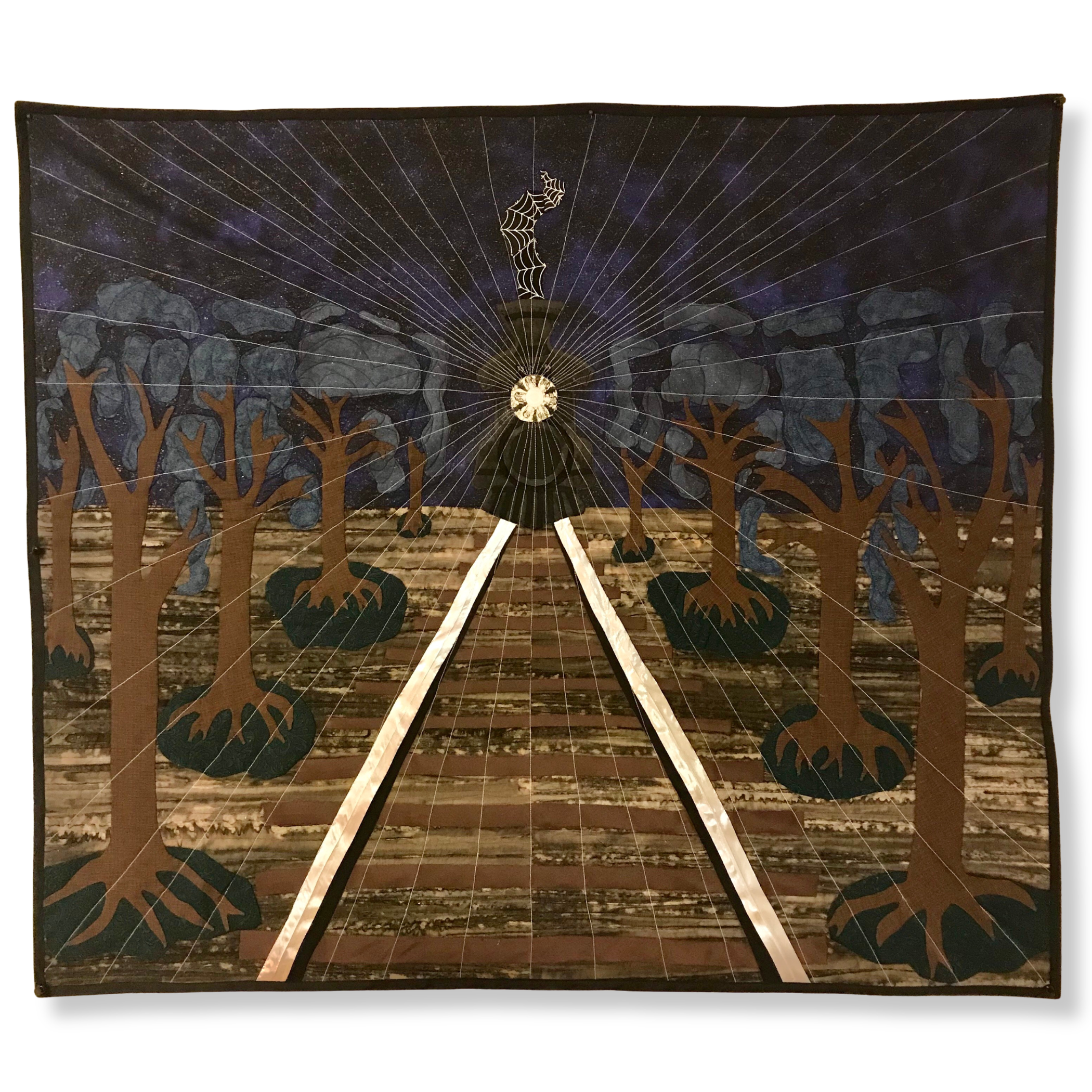 Browse the Collection Glimmer Mel Dugosh Size 37 in x 43 in (94 cm x 109 cm) Year 2020 Price $0.00 Buy Now >> Preserved railways are glimmers to the distant past when locomotives were called the pulse of our continent. Materials Fabric, ribbon, thread, batting Techniques Edge turned hand appliqué, machine quilted