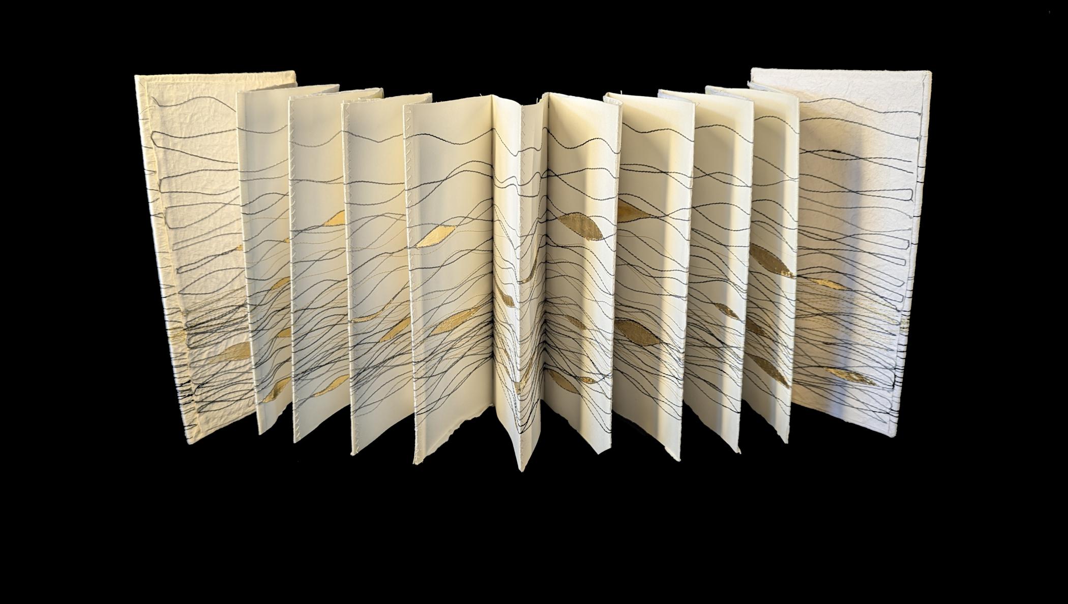 Momigami, paper folding and cutting, hand and machine stitch, gilding