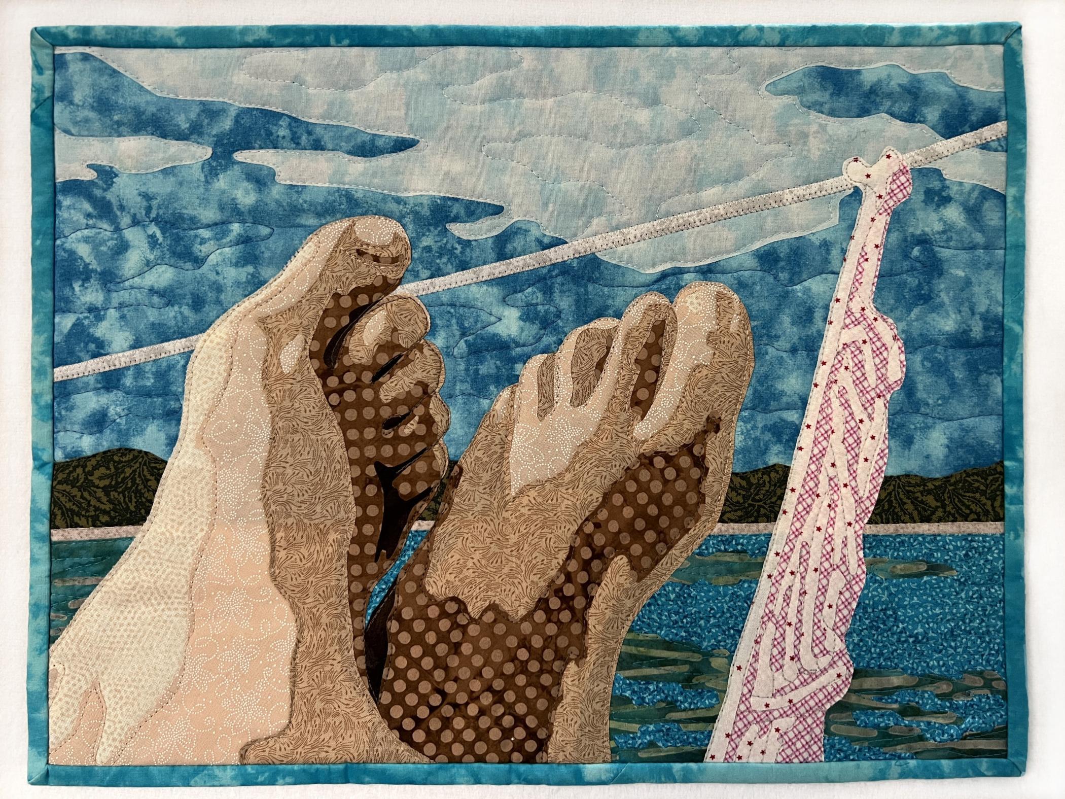 Not your typical portrait, this quilt captures the relaxed mood of a sailor after a day of sailing through tropical waters, as he contemplates his idyllic surroundings.