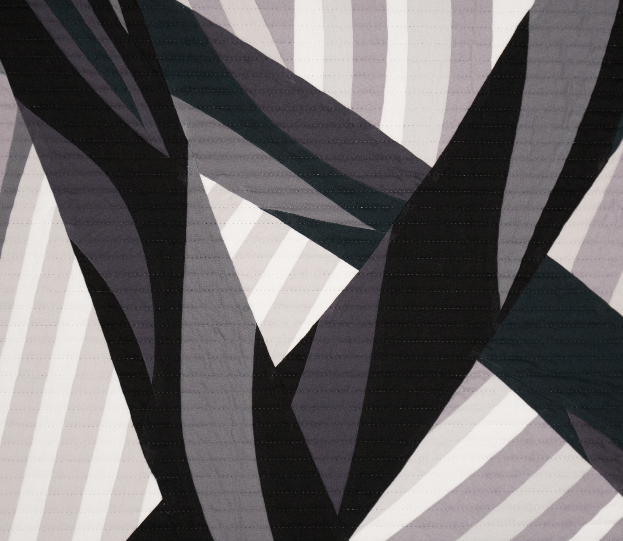 Freehand cut, improvisationally machine pieced, longarm quilted.