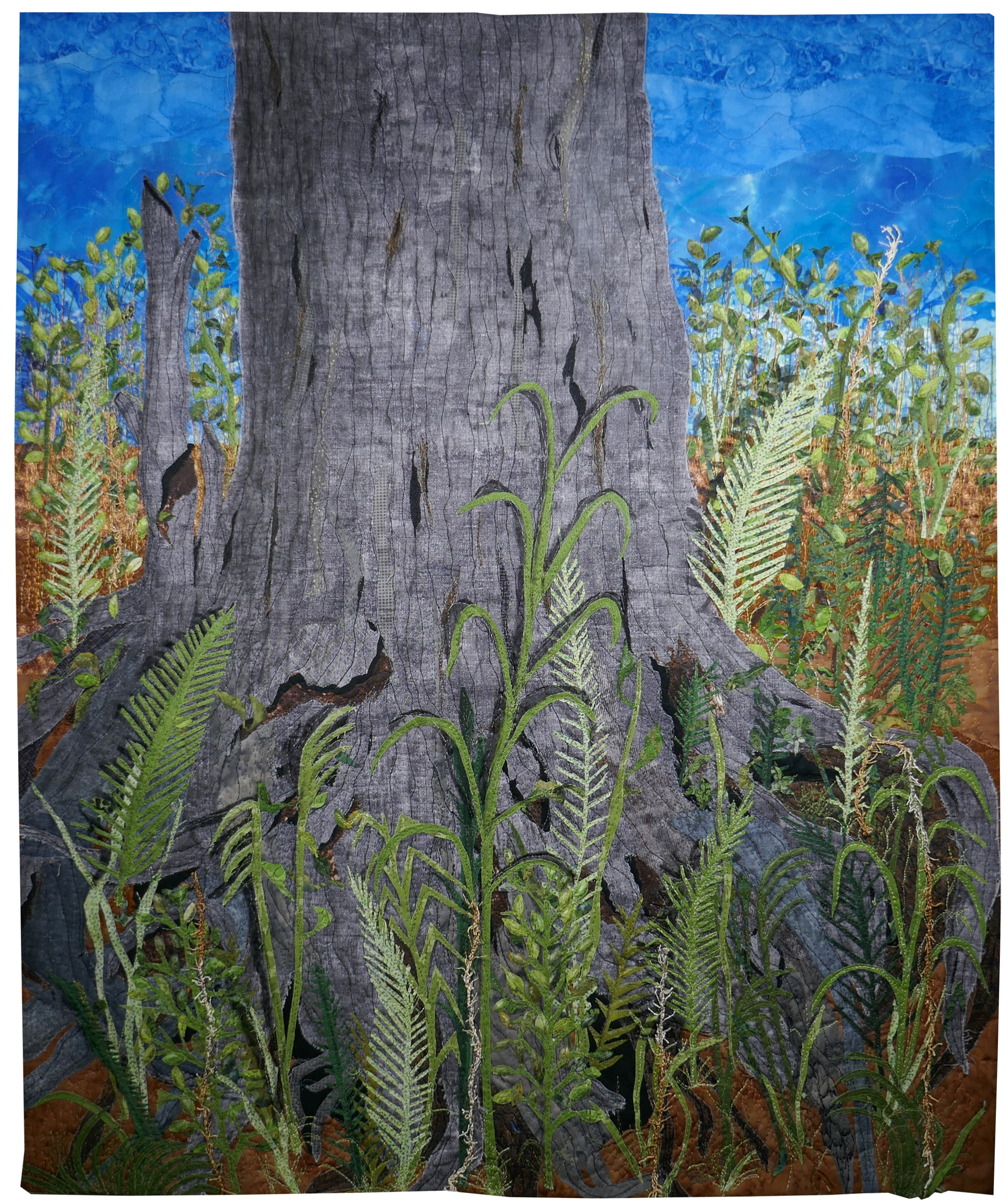 On a hot, sticky day, I decided to leave the city and head to a nearby park. The park has a wonderful cliff with a gentle creek meandering beneath it. As I waded in the cool water, I came upon an old tree. At one time it had a majestic canopy, but it died many years ago. I was struck by the contrast between the dead tree and the profusion of trees, flowers, and weeds that surrounded it. The cycle of growth, decay, and renewal continues in spite of all we have done to ignore the earth’s distress.