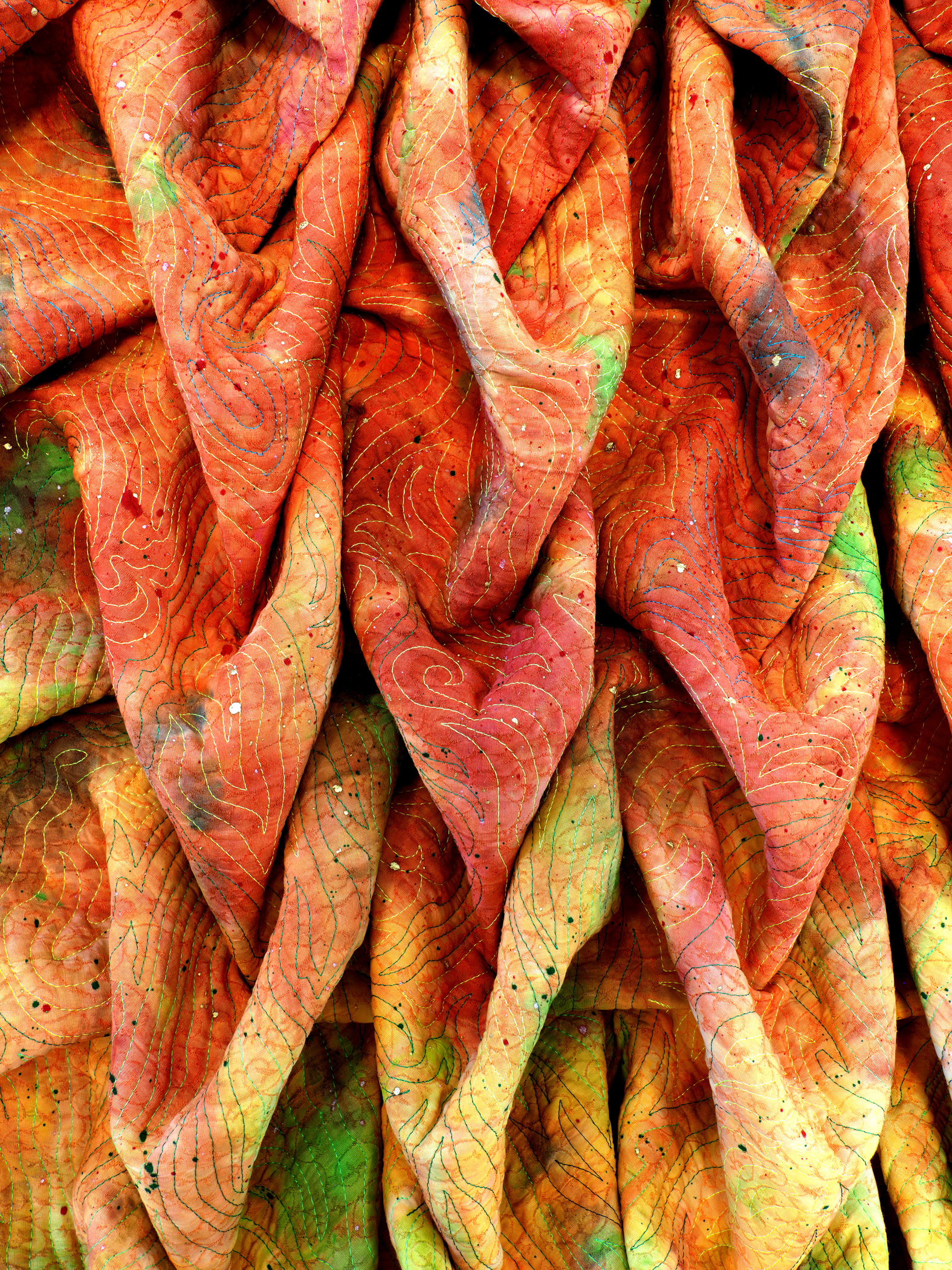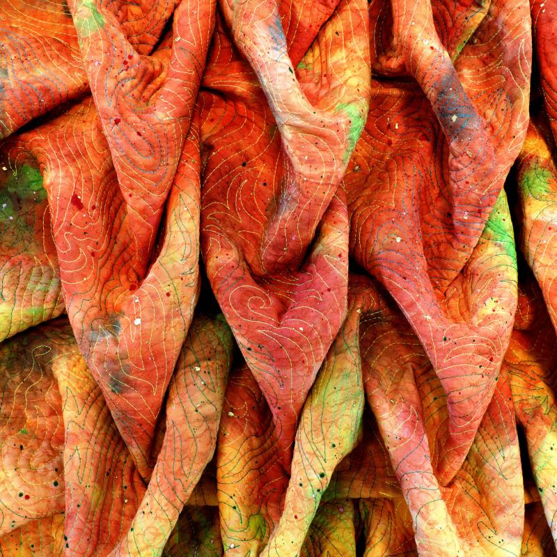 Painted, free motion quilted, sculpted