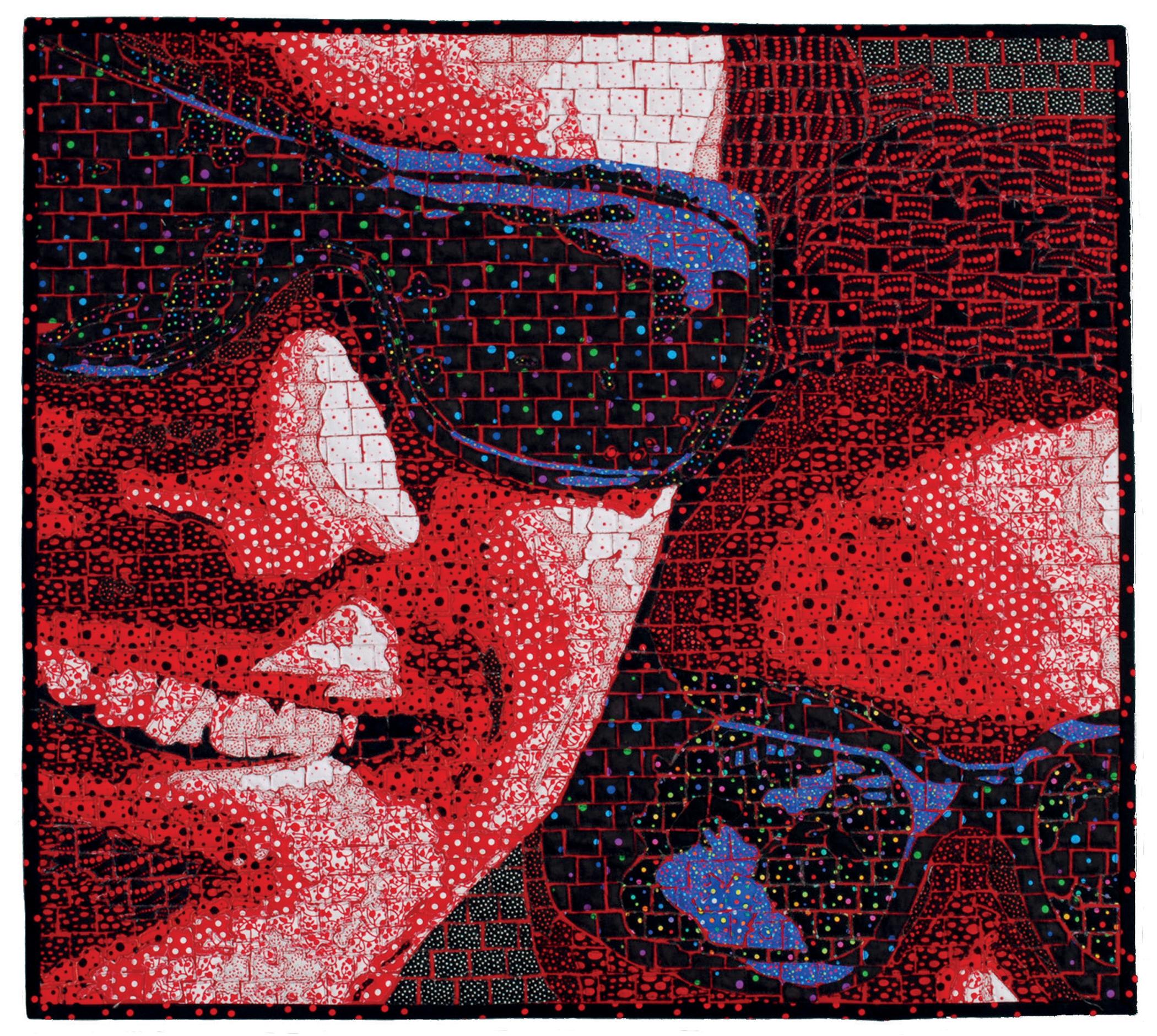 I became intrigued with light and shadow, and I "saw" this photograph in red and white. Portraits in a close-up, cropped form sometimes create a much better composition than traditional portraits. This piece is one of many portraits in my work, in particular, of family members.