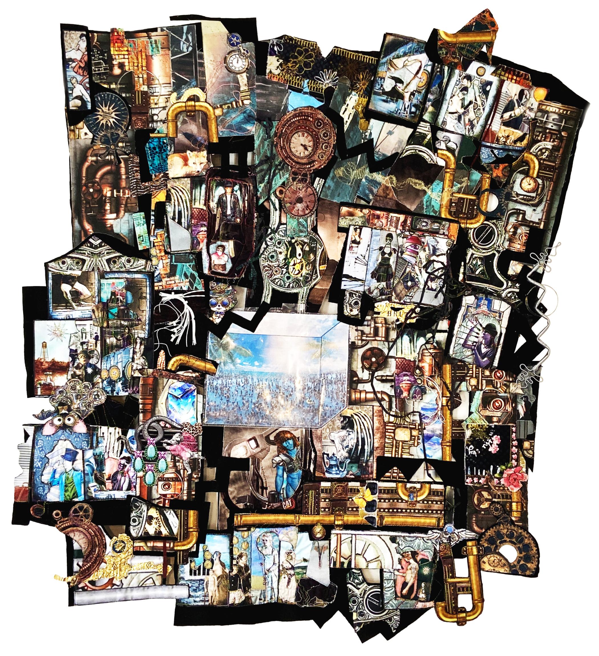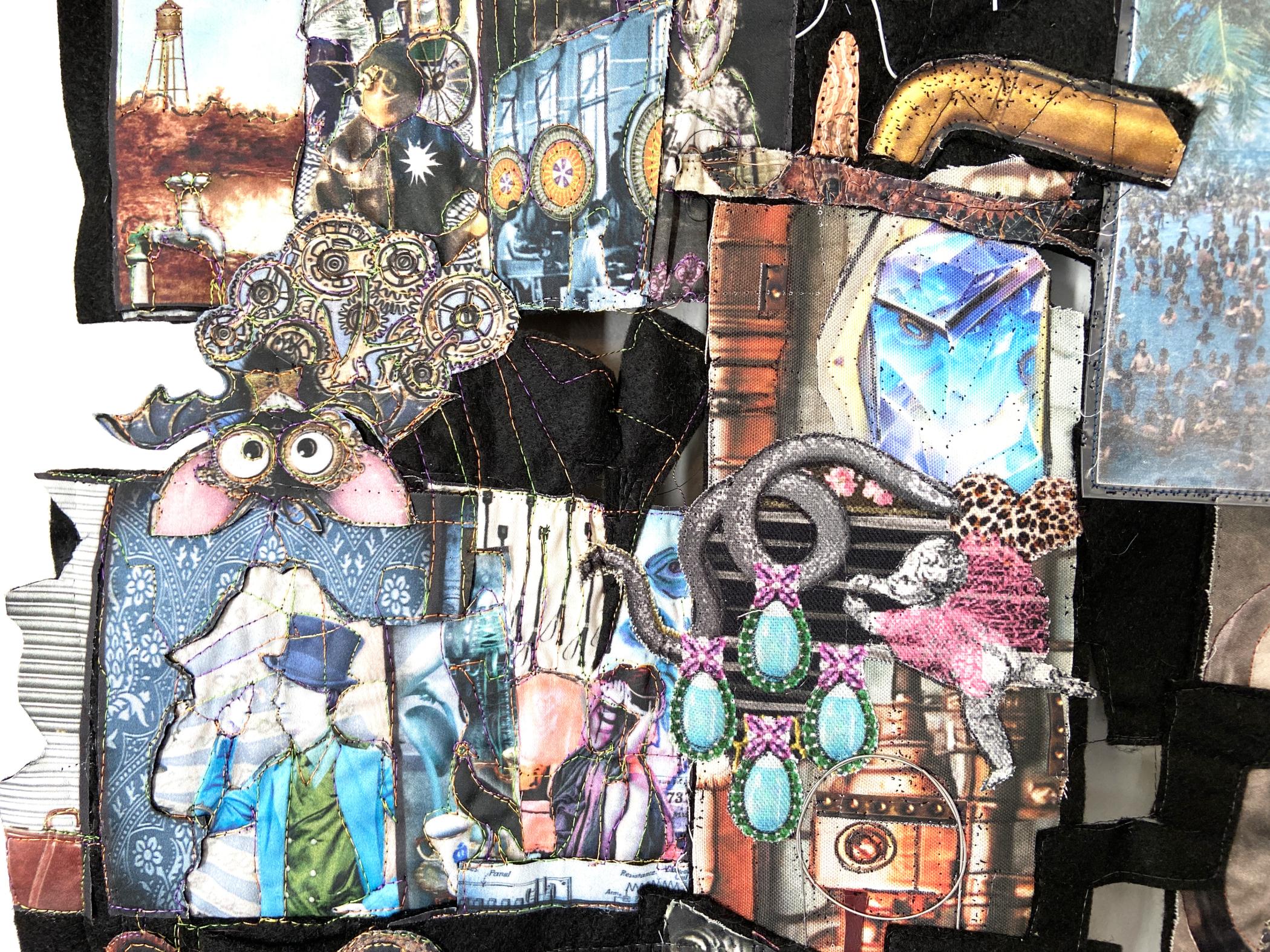 Fabric, felt, transparent plastic, paper, wire, digitally manipulated image
