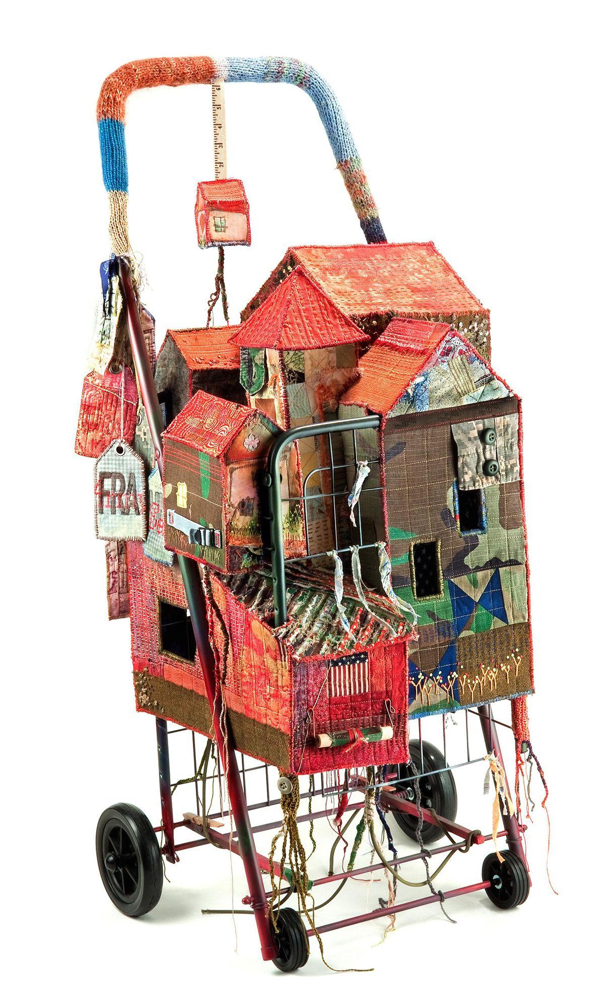 Part of a large series reflecting on her life as a U.S. Army wife, this piece contrasts the humor of the shopping cart imagery with the stress caused by continual displacement experienced by army families. La Flamme wrote, “The quintessential military spouse is everything to everyone and manages the chaos with a serene smile… She tries her best to keep it all close… to stoically endure the often lonely and transient life of a military spouse."