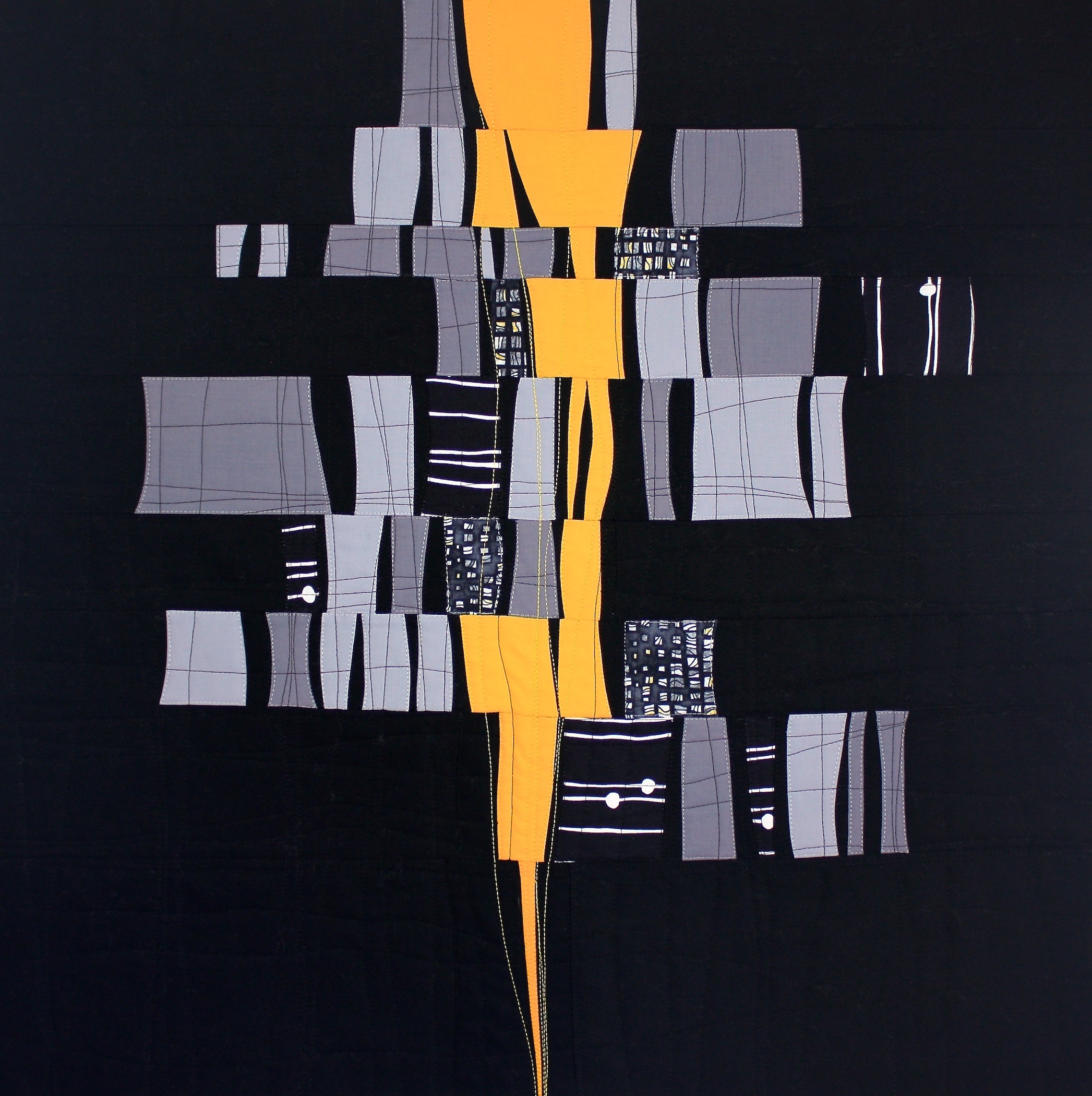 This quilt was titled after a song by Leonard Cohen..."There is a crack in everything, that's how the light gets in." YES! This one took quite awhile on the design board but I love how it turned out. For me, art benefits from contrast and drama and I think this piece has both. And this quilt says what I want it to say.