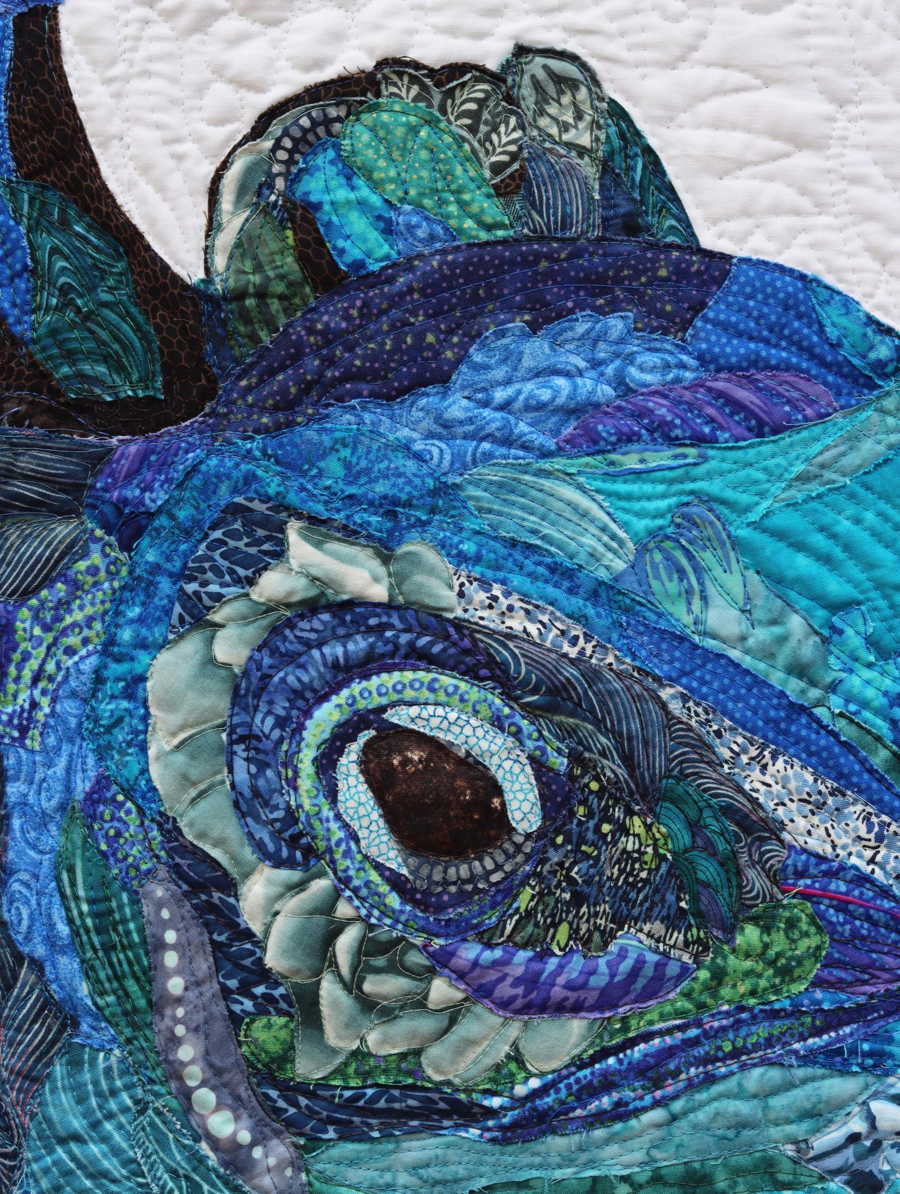Raw edge appliquéd, glued, machine quilted