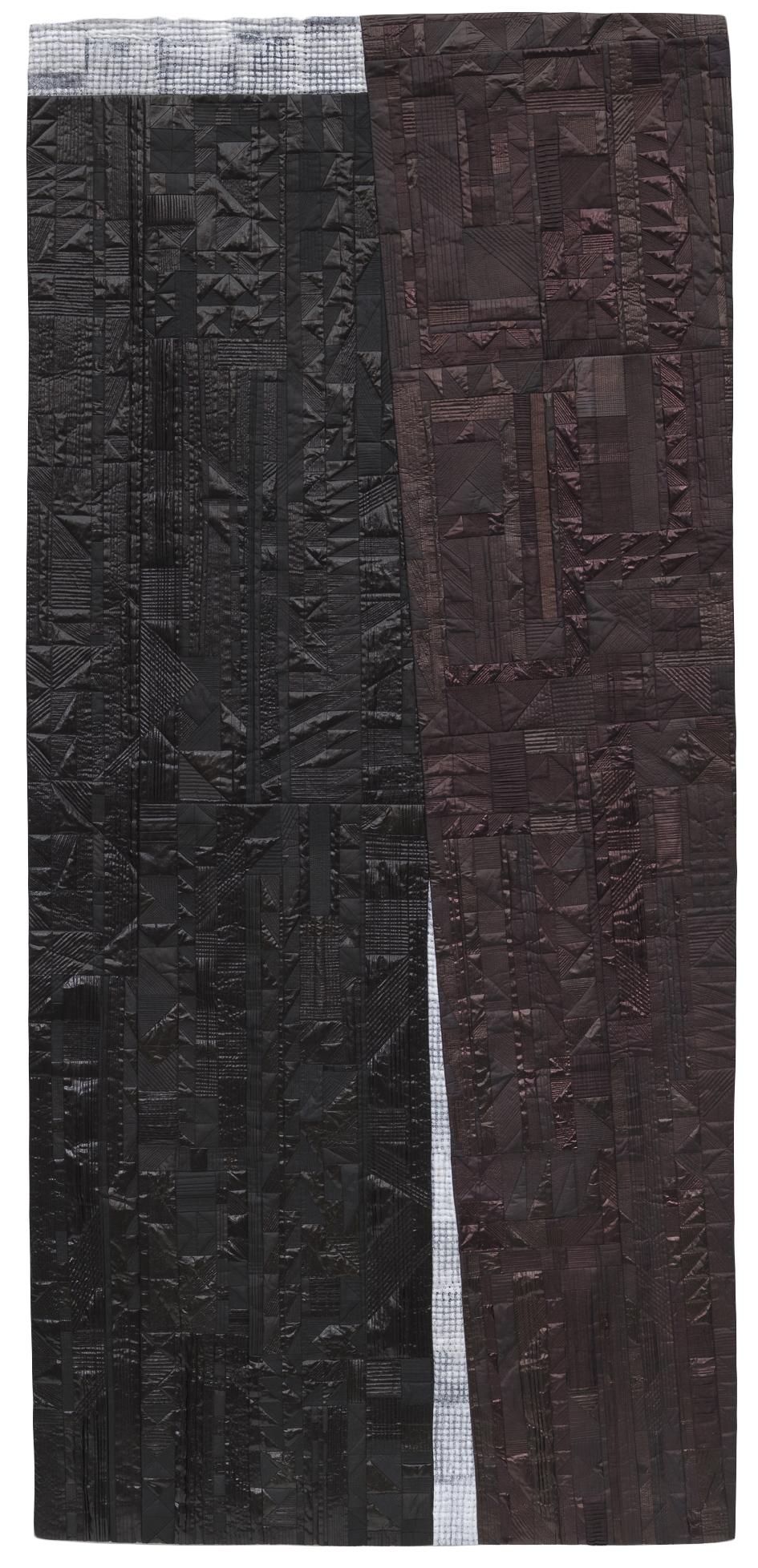 In 2014 I became interested in the cloth created by a Chinese ethnic minority who over dye their indigo cotton with mixtures of ox or pig blood and peppers. They cover one side of the fabric with egg whites and then beat the cloth with mallets. This results in a piece of fabric that is very shiny on one side and matte on the reverse. I have spent the last five years working with this fabric discovering its inherent properties.