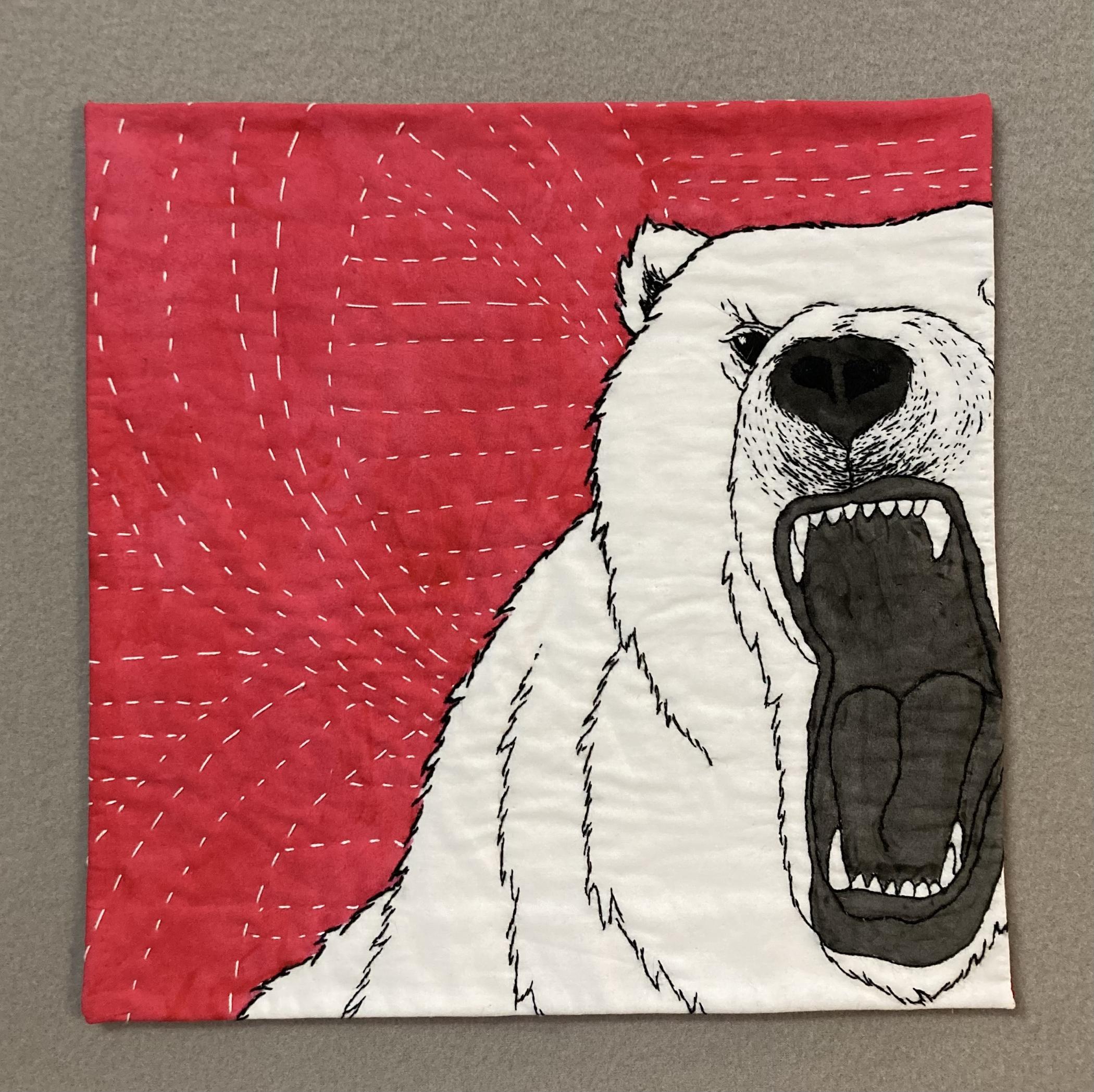 Cotton quilt facing, backing and batting, fabric paint, cotton floss and pearl thread