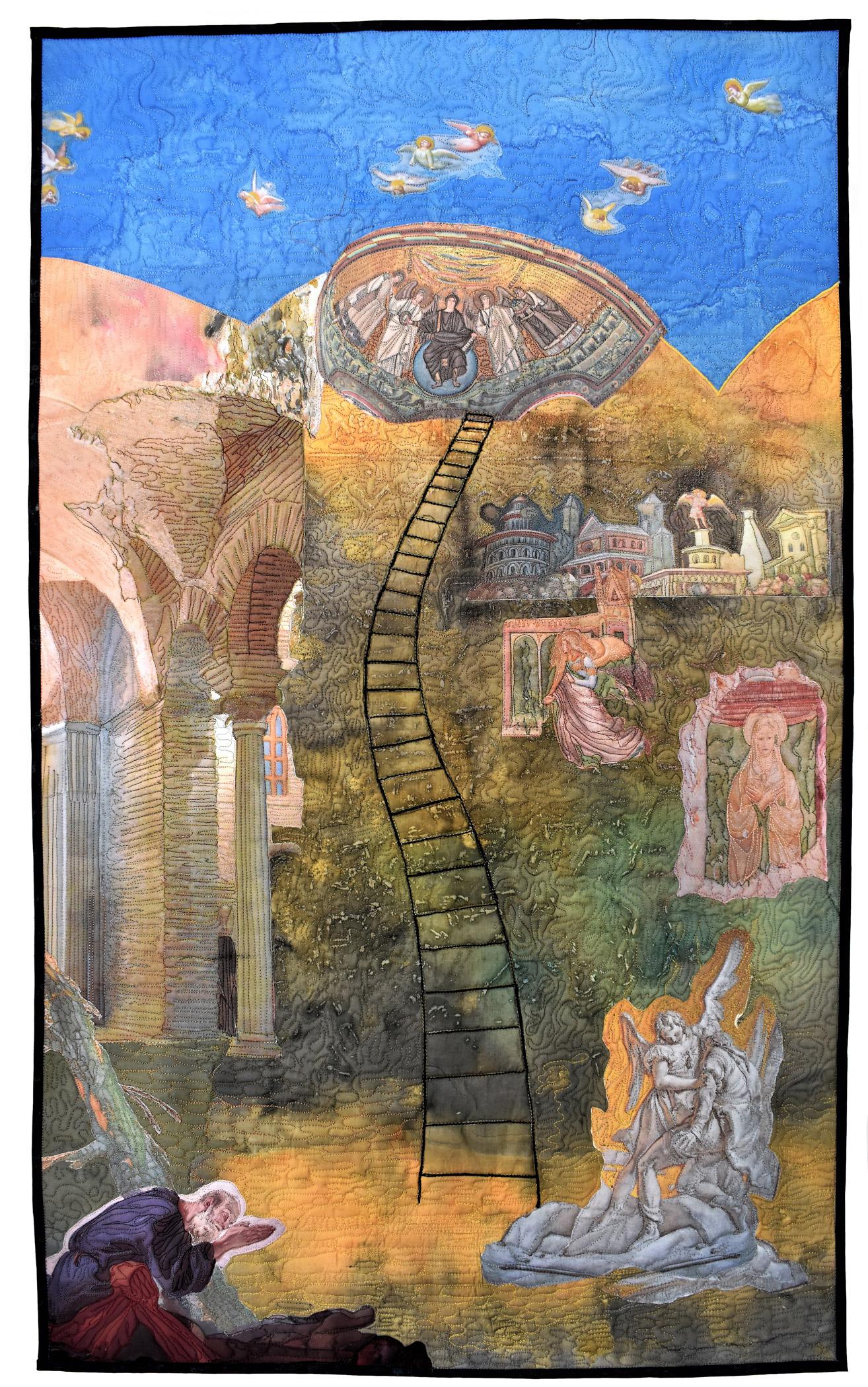 The stillness, reverence and atmosphere emanating in the Basilicas of Northern Italy inspired me to create Jacobs Ladder. It is a combination of several locations. The history within each was palpable and the ceiling height awe inspiring. The care, respect, and their preservation is part of the heritage of Christianity. I envisioned Jacobs Ladder disappearing into a Heavenly Kingdom.