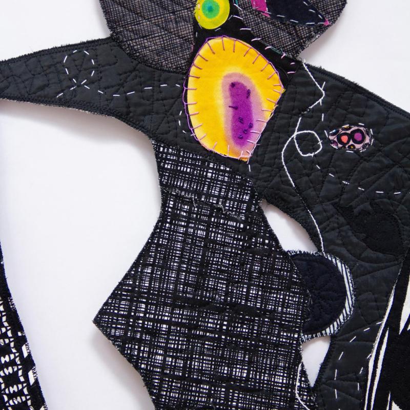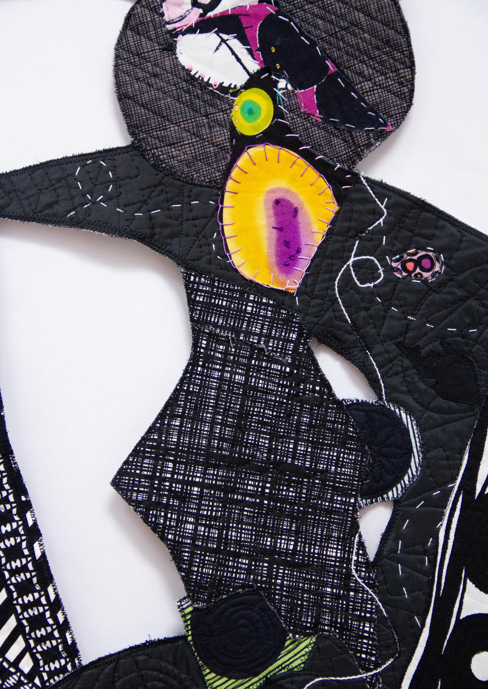 Machine stitched, hand embroidered, fused