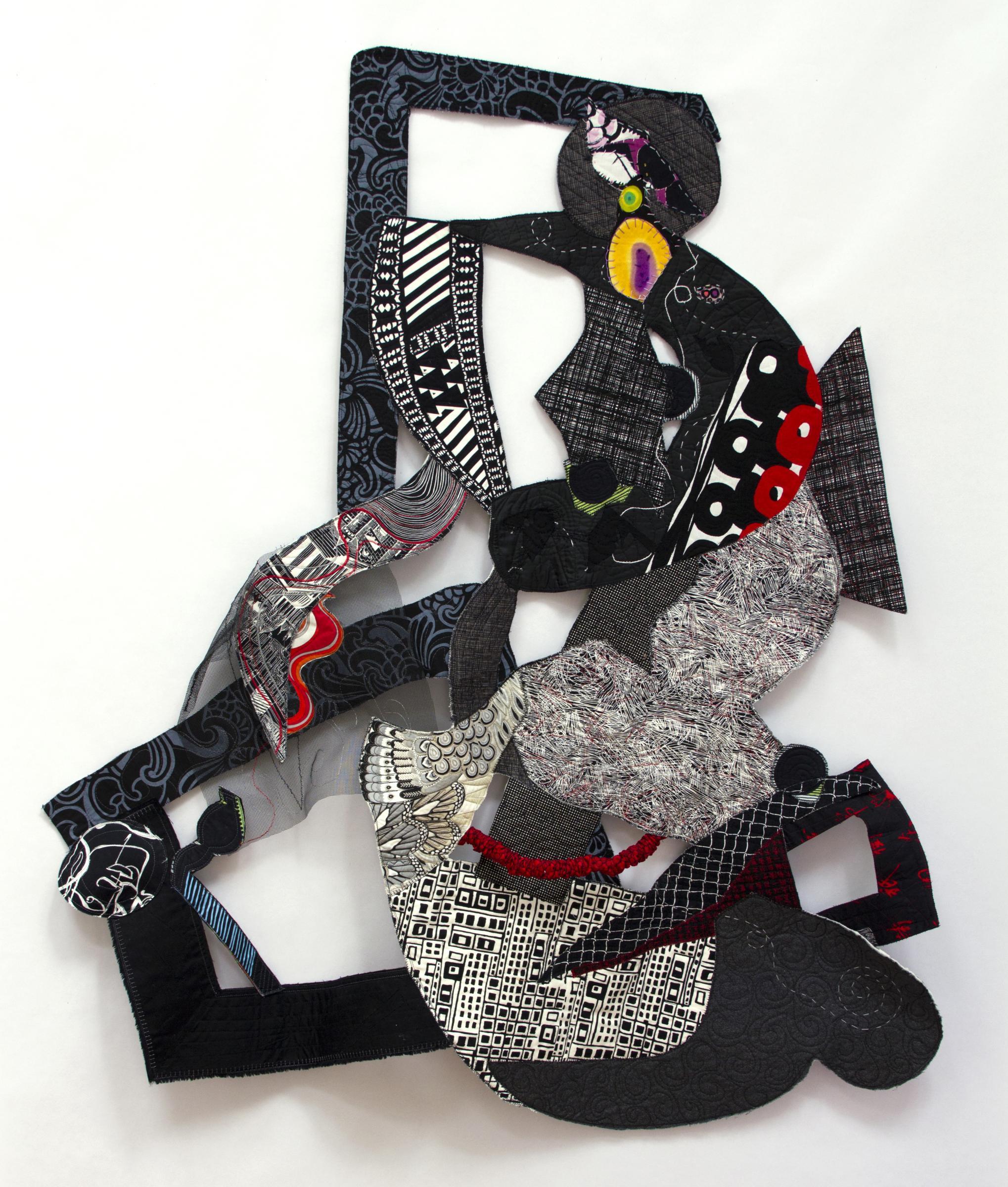Movement and music were in my thoughts as I created this piece. The negative spaces provide resting spots and are an integral part of jazz. The contrast between the linear and the curved pieces speaks to me of the dynamics of a musical piece.