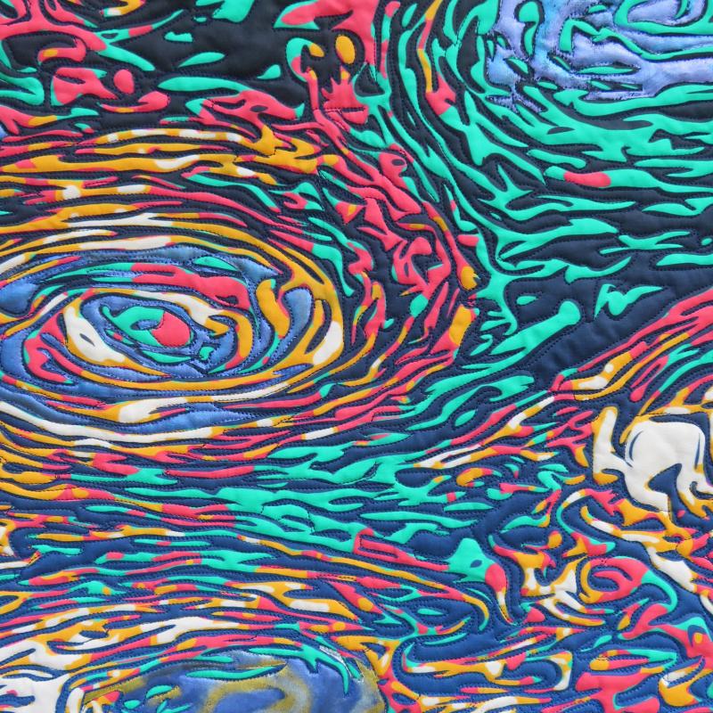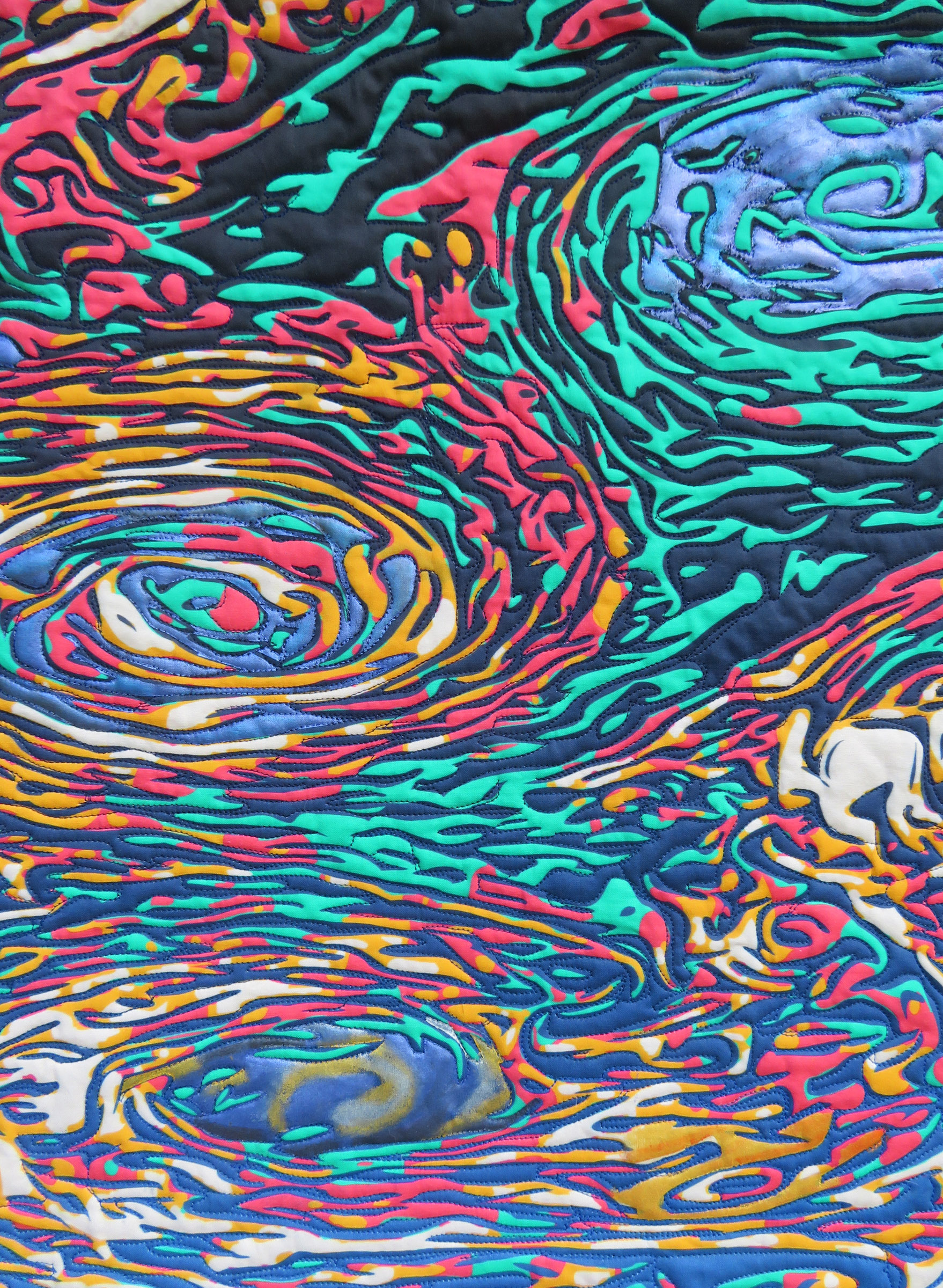 Digitally manipulated and printed, painted, dyed, free motion stitched