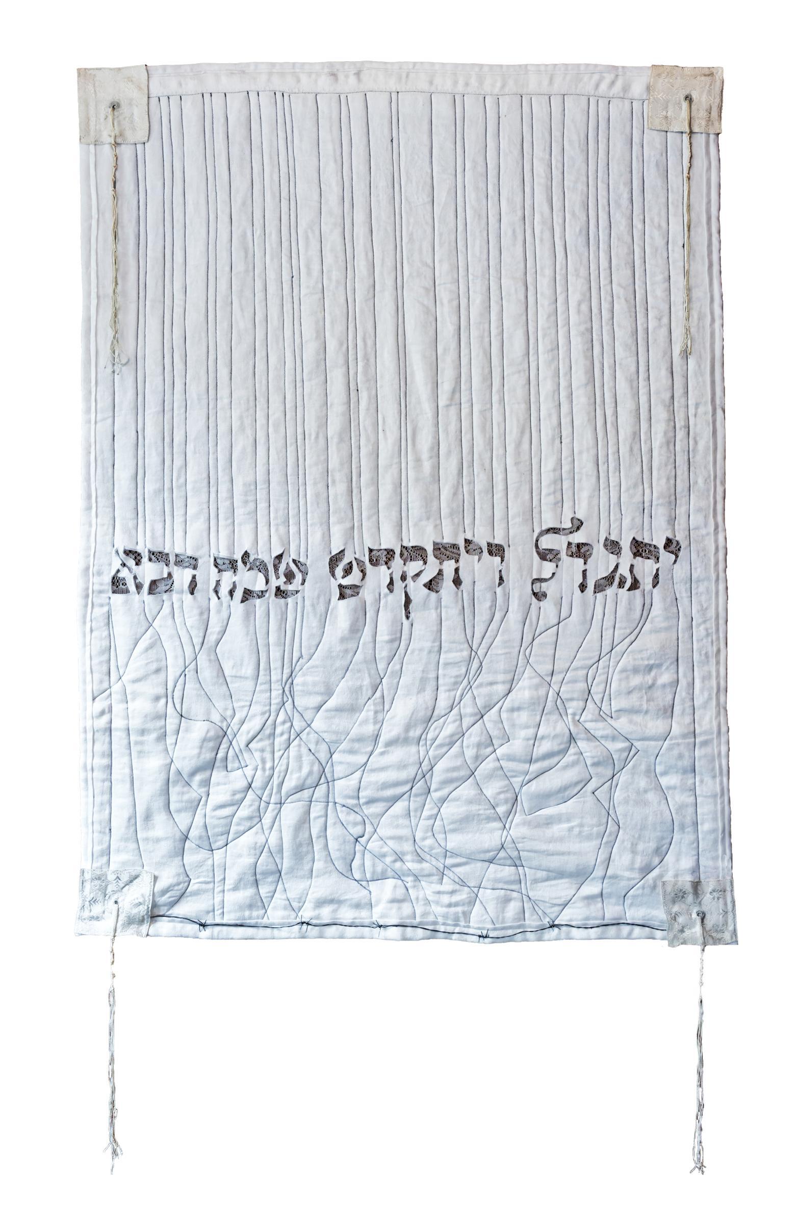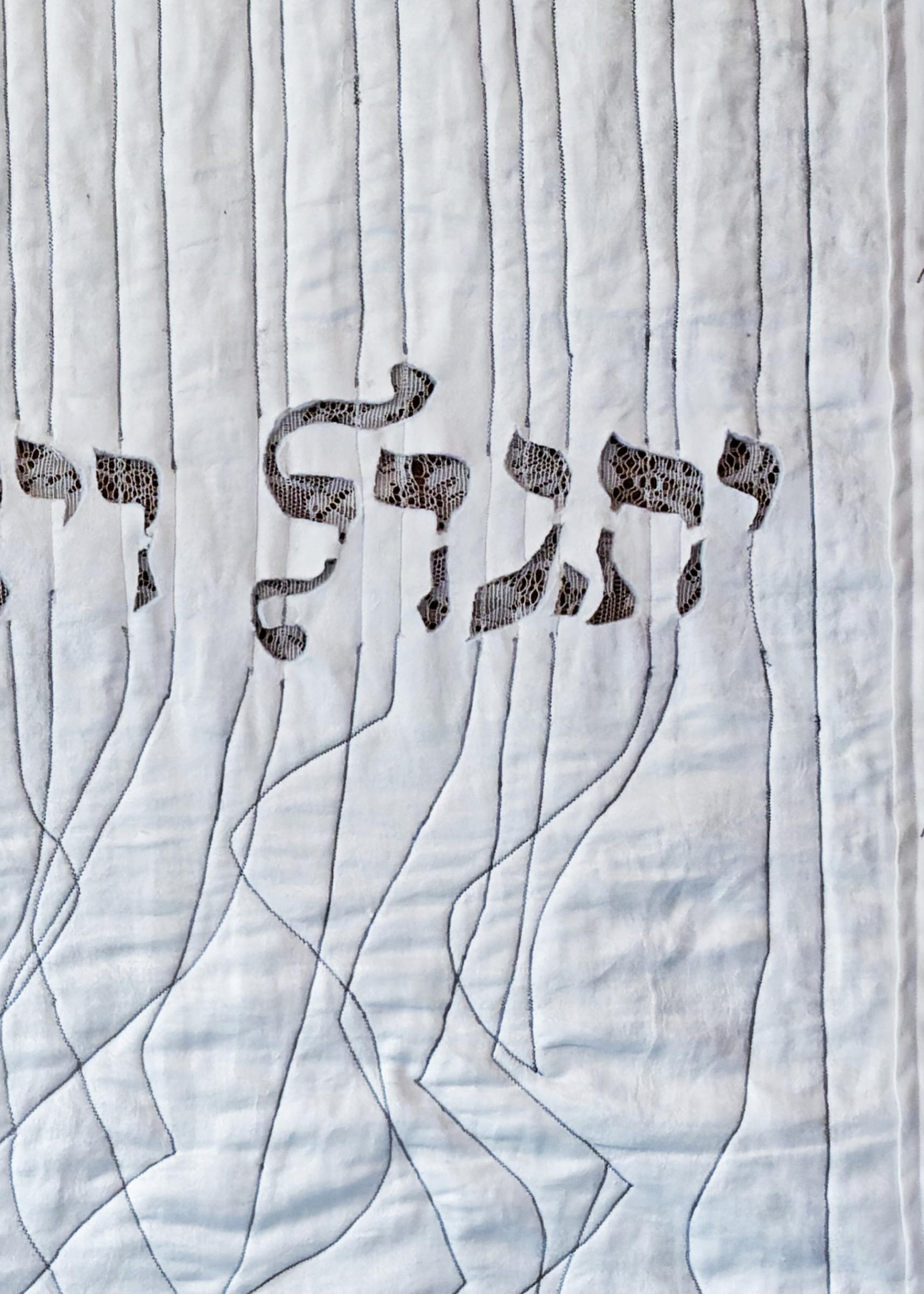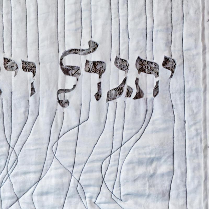 “Magnified, sanctified, be Thy holy name...” These words, from Leonard Cohen’s You Want it Darker are taken directly from the Kaddish, the Jewish prayer for the dead. No mention is made of death; it is simply a prayer of praise. Written in the 13th century in Aramaic, the Kaddish is said during every traditional prayer service where a quorum of 10 is present. And so, after World War ll was over, as if the horrors of the Holocaust weren’t enough, the public recitation of the Kaddish was outlawed in countries the Soviets controlled, no doubt to prevent Jews from gathering. My piece is the first four words of the Kaddish expressing continuance following tragedy.