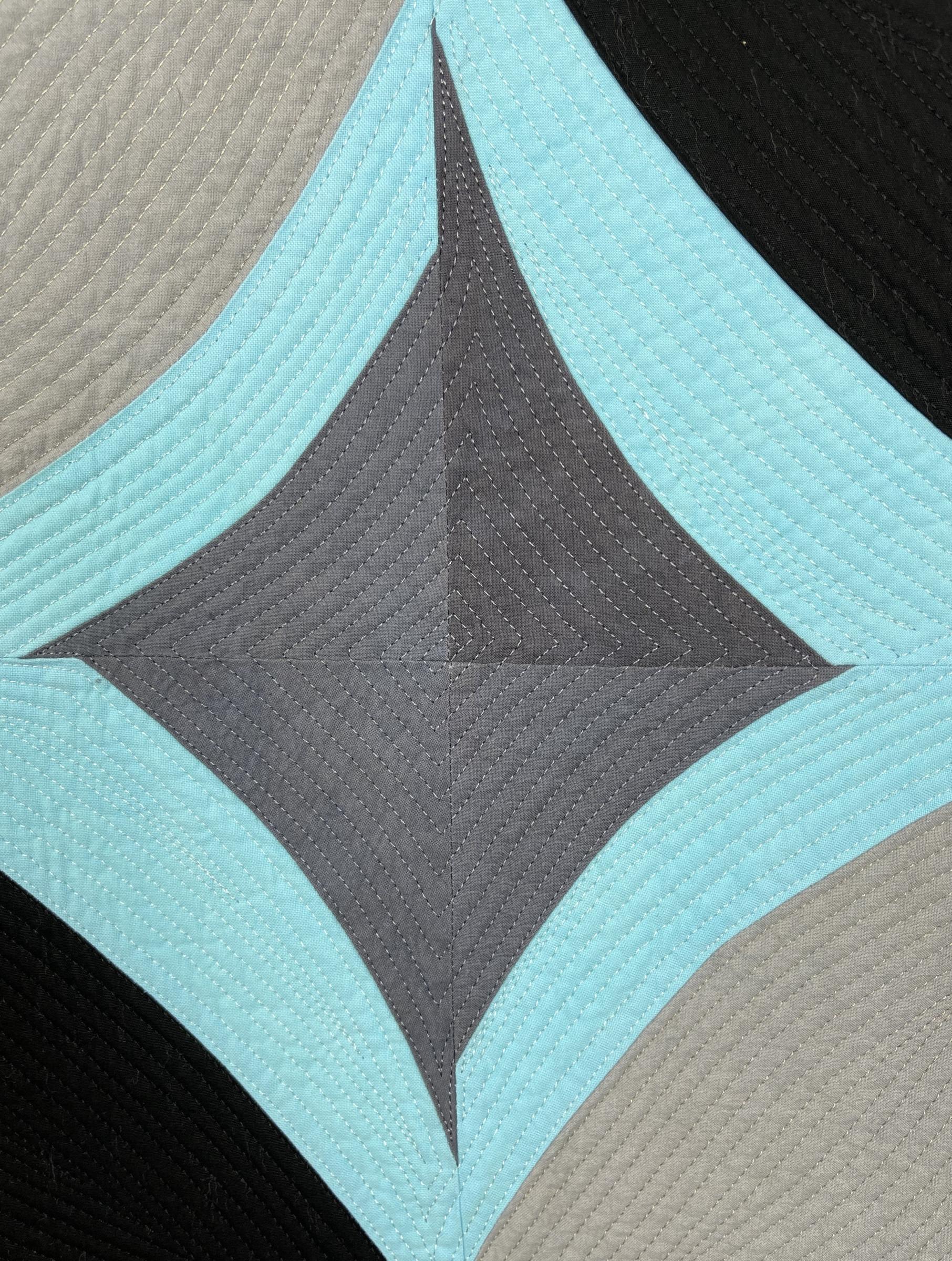 Pattern created by the artist based on original sketch; machine pieced and heavily machine quilted