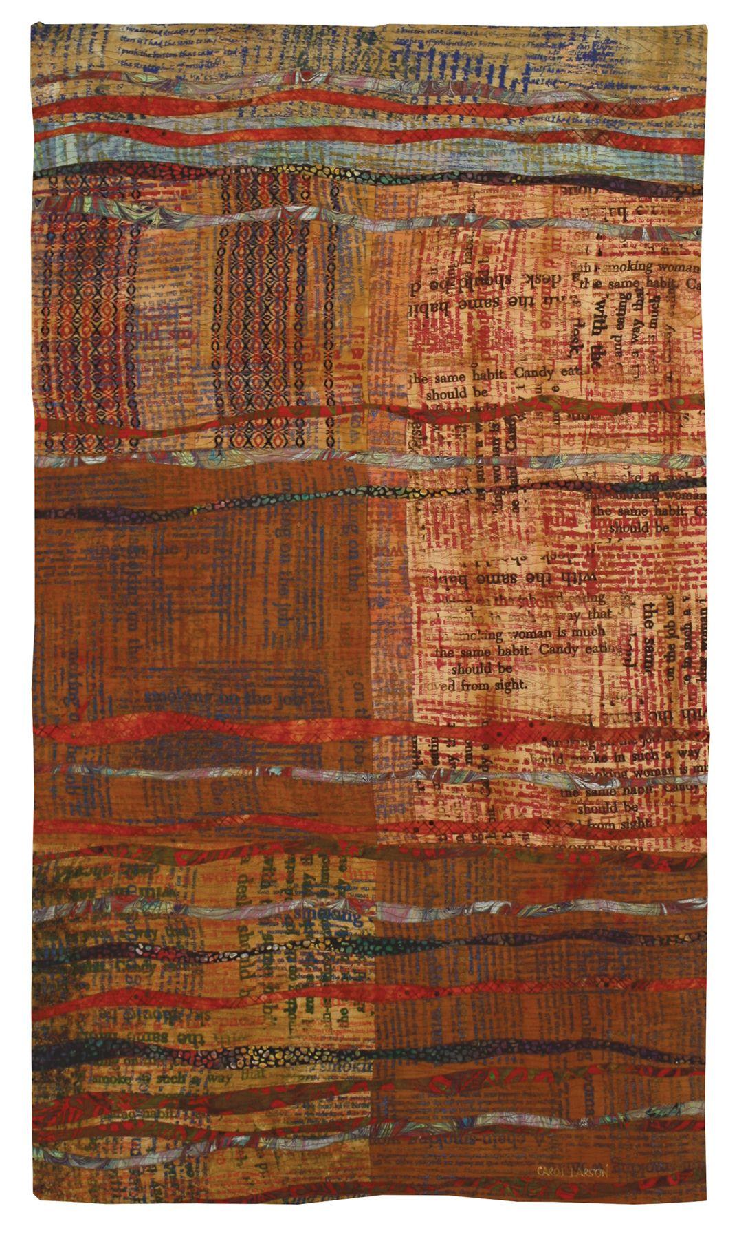 Hand dyed, screen printed, machine appliquéd, machine stitched