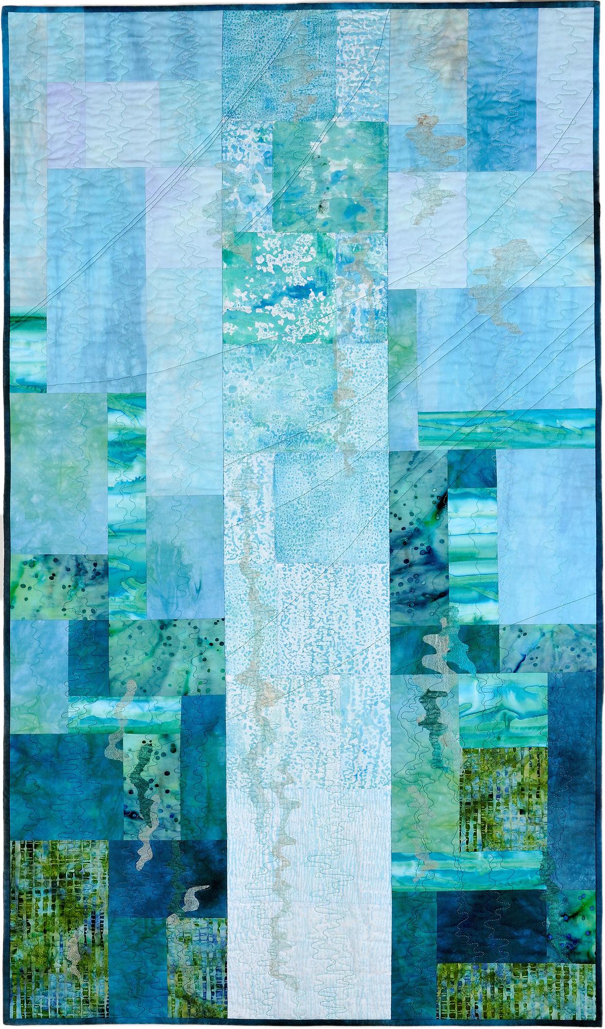 This quilt is about the river Rh�ne which crosses the Leman Lake and then travels down to the Mediterranean sea.