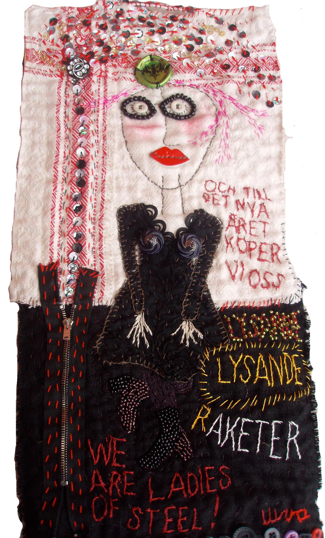 I want to celebrate New Years Eve as it should be celebrated with fireworks and crackers! I don�t give a damn about dog-owners who want to forbid it because they have nervous dogs. As a human being I think I have at least the same value as a dog. We are ladies of steel also because part of the embroidery is made by japanese wool mixed with stainless steel! And River Dancing!