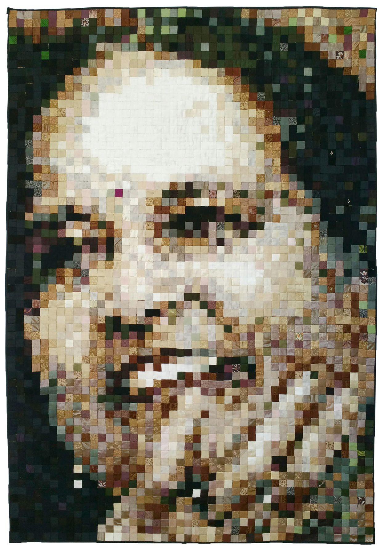 My memories of Lakshmi are kept in pixels—those little squares which are assembled and transformed into her image. Lakshmi had the ability to switch roles from mother to sister, wife, or daughter as easily and gracefully as the drape of her silk saris. Altering the role of her saris from clothes to cloth, I recycled them into pixels. And as I walk away, those pixels assemble and metamorphose into her image, returning safely to the confines of my memory.