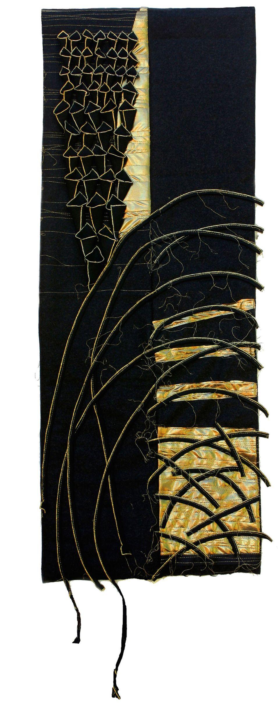 Browse the Collection Language of Frost Aina Muze Size 68 in x 23 in (173 cm x 58 cm) Exhibition Masterworks: Abstract & Geometric (SAQA Global Exhibition) Price $6,850.00 Buy Now >> This piece is part of my nature series. I have been experimenting with different fabrics, seemingly incompatible, discrepant in their textures. I am trying to reveal the essence of the subject – the processes of nature.