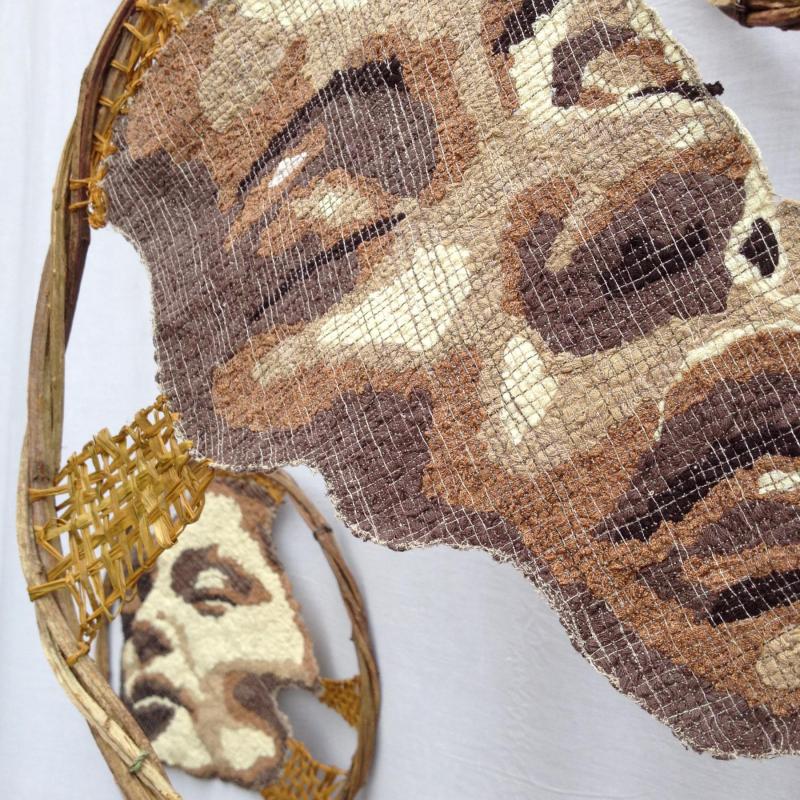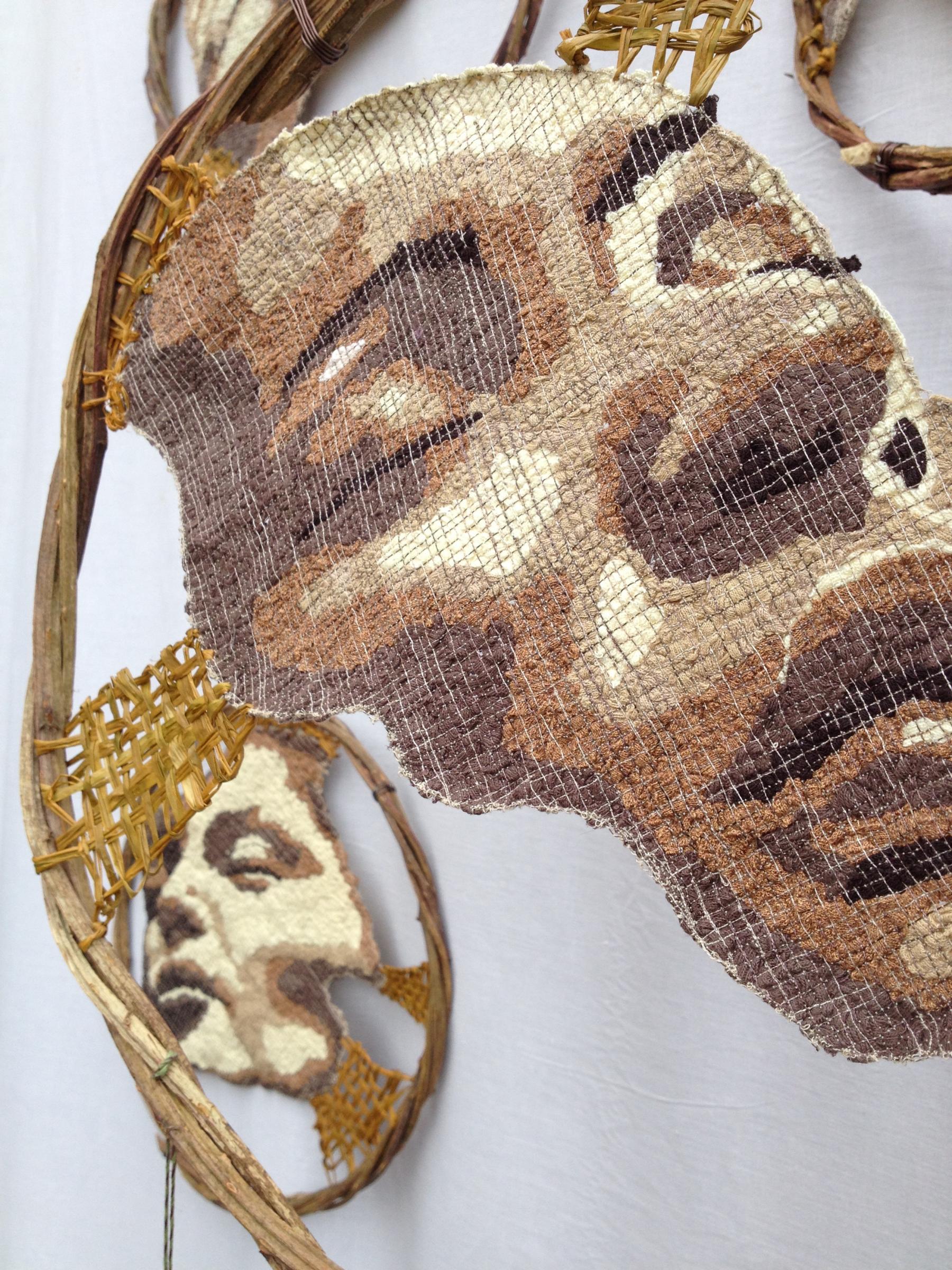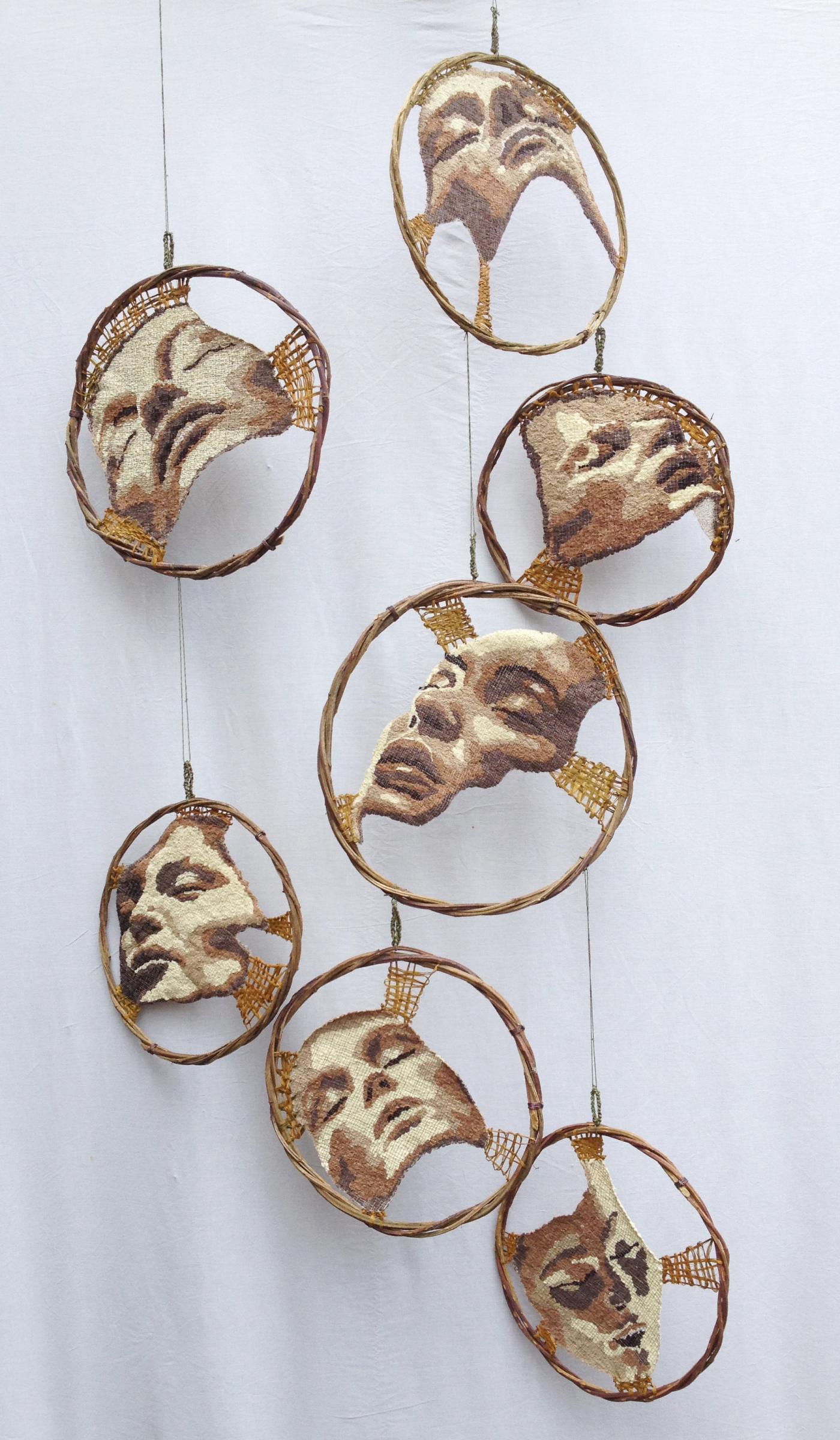 Dreams may be on the edge of the human technology, they let us go into virtual worlds. I translate that creating a mobile of reversible portraits of sleepers, dreamers made with my own technique of narrow strips of jersey cotton packed and held with a free motion machine sewed net