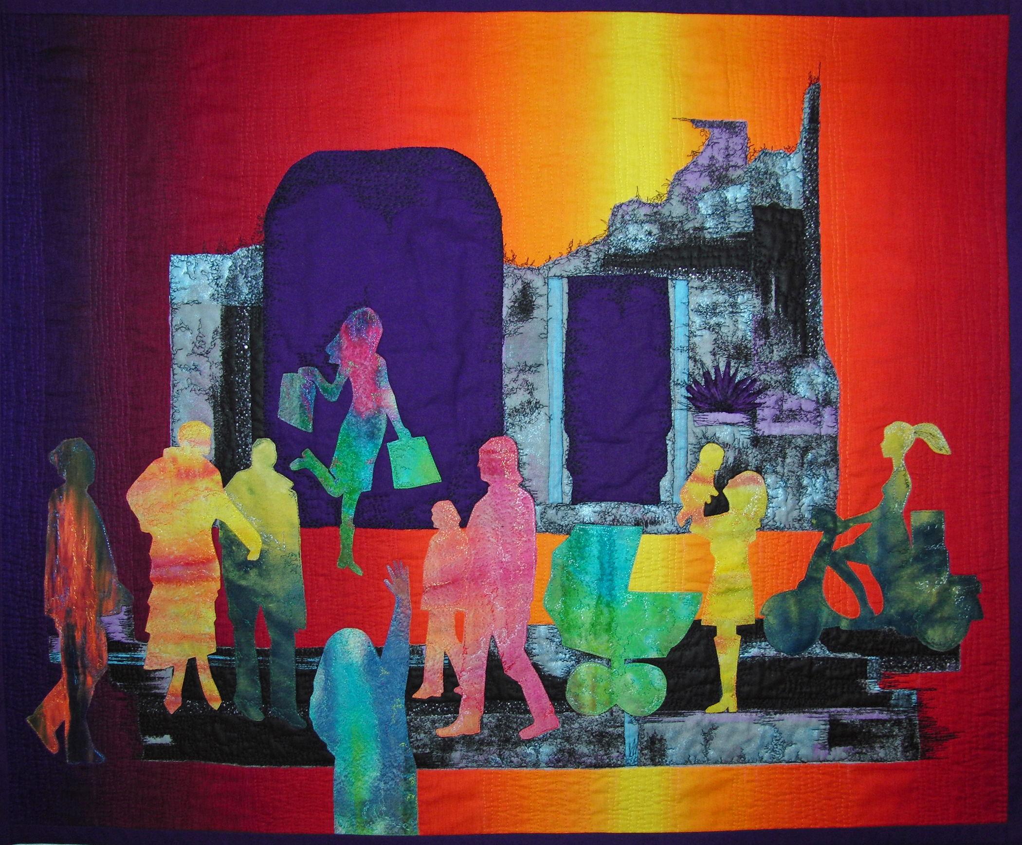 I decided to make a quilt with colourful people, who are all going to the quilt show.