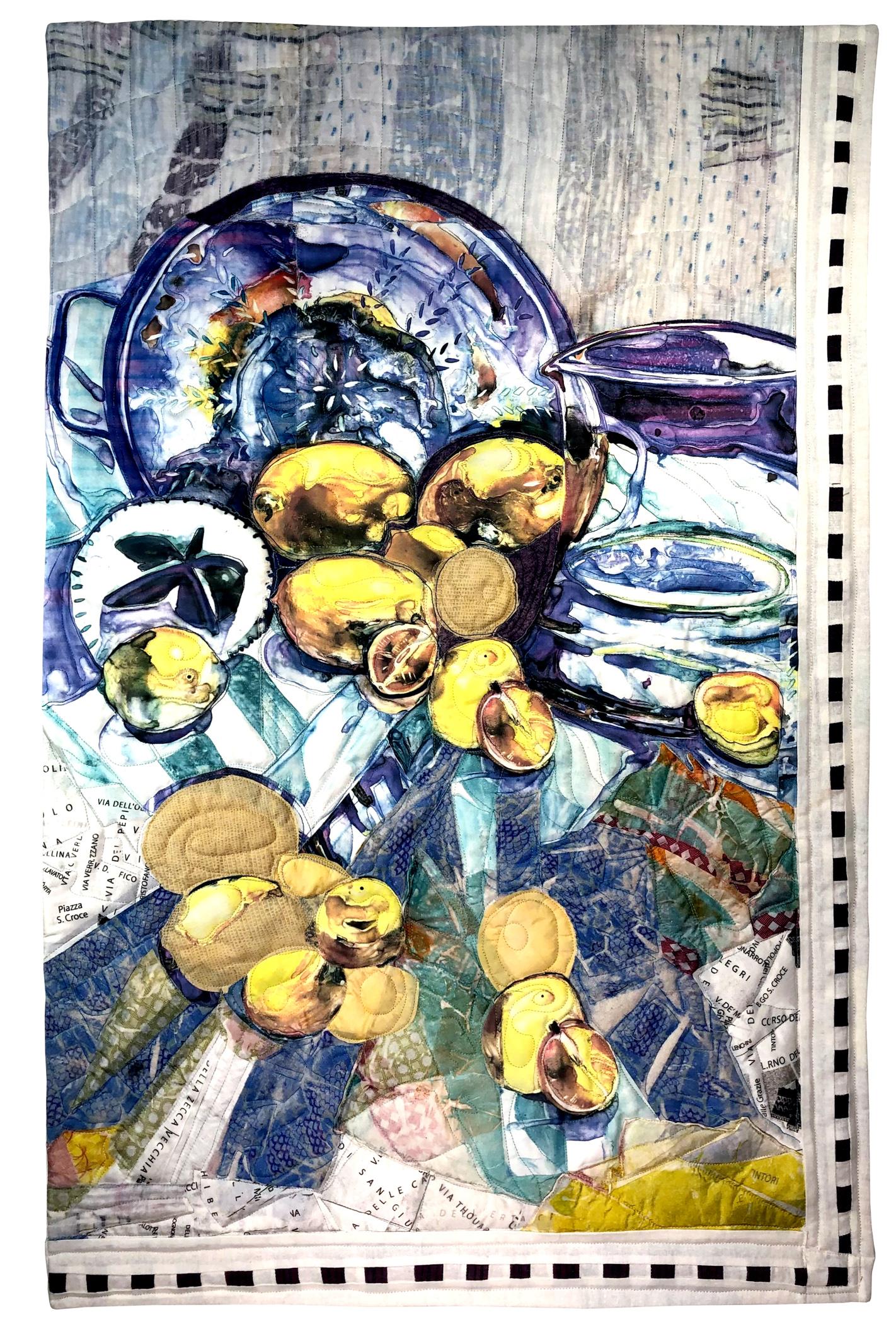 Limoncello is an integral part of Italian gastronomy. It is most often served after dinner and dessert. And of course, the main ingredient is the juice squeezed from lemons. The fabric was digitally printed from my Italian watercolor paintings.