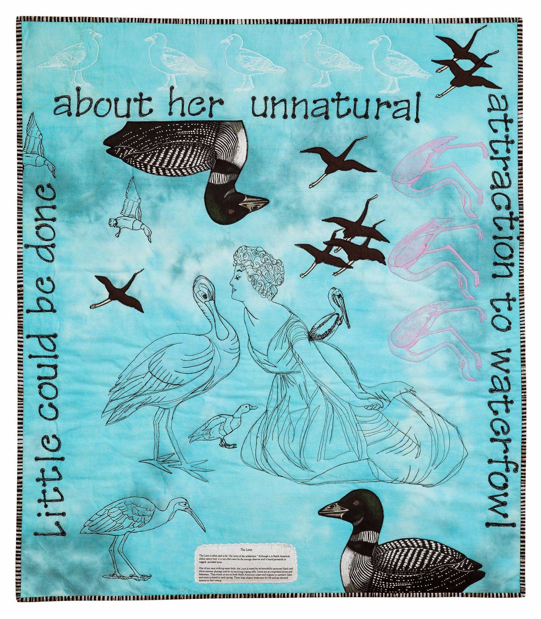 Browse the Collection Loony Linda Frost Size 36 in x 32 in (91 cm x 81 cm) Exhibition Wild Fabrications (SAQA Global Exhibition) Price $0.00 Buy Now >> Water fowl seem to navigate sky, land, and sea with great success and little fear. I marvel at their diversity in physical form and lifestyle. Could one admire their ability to adapt too much?