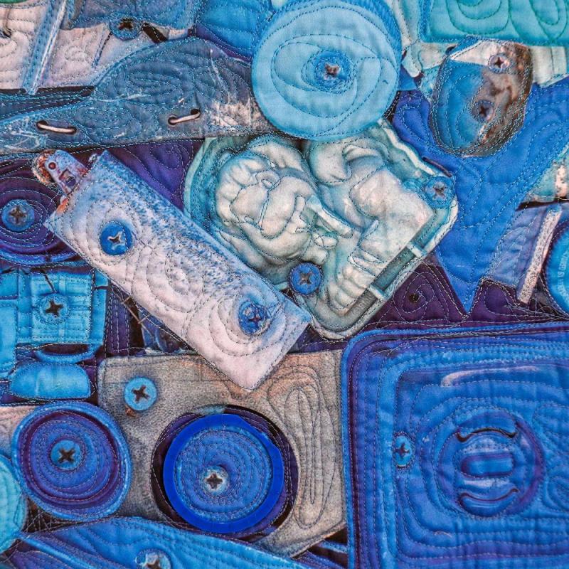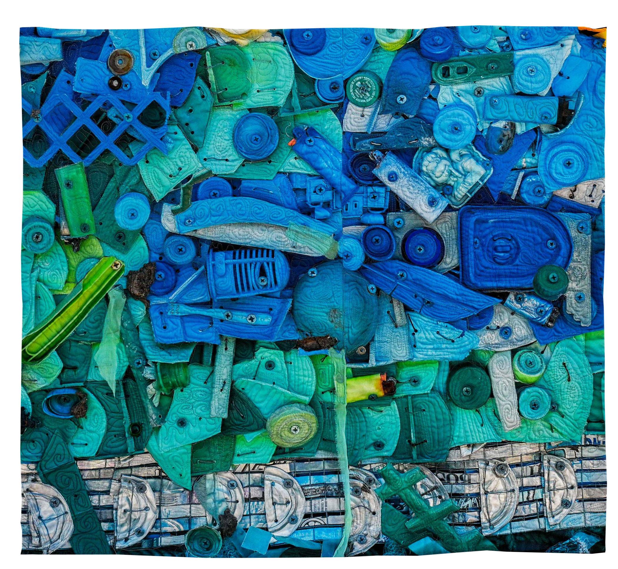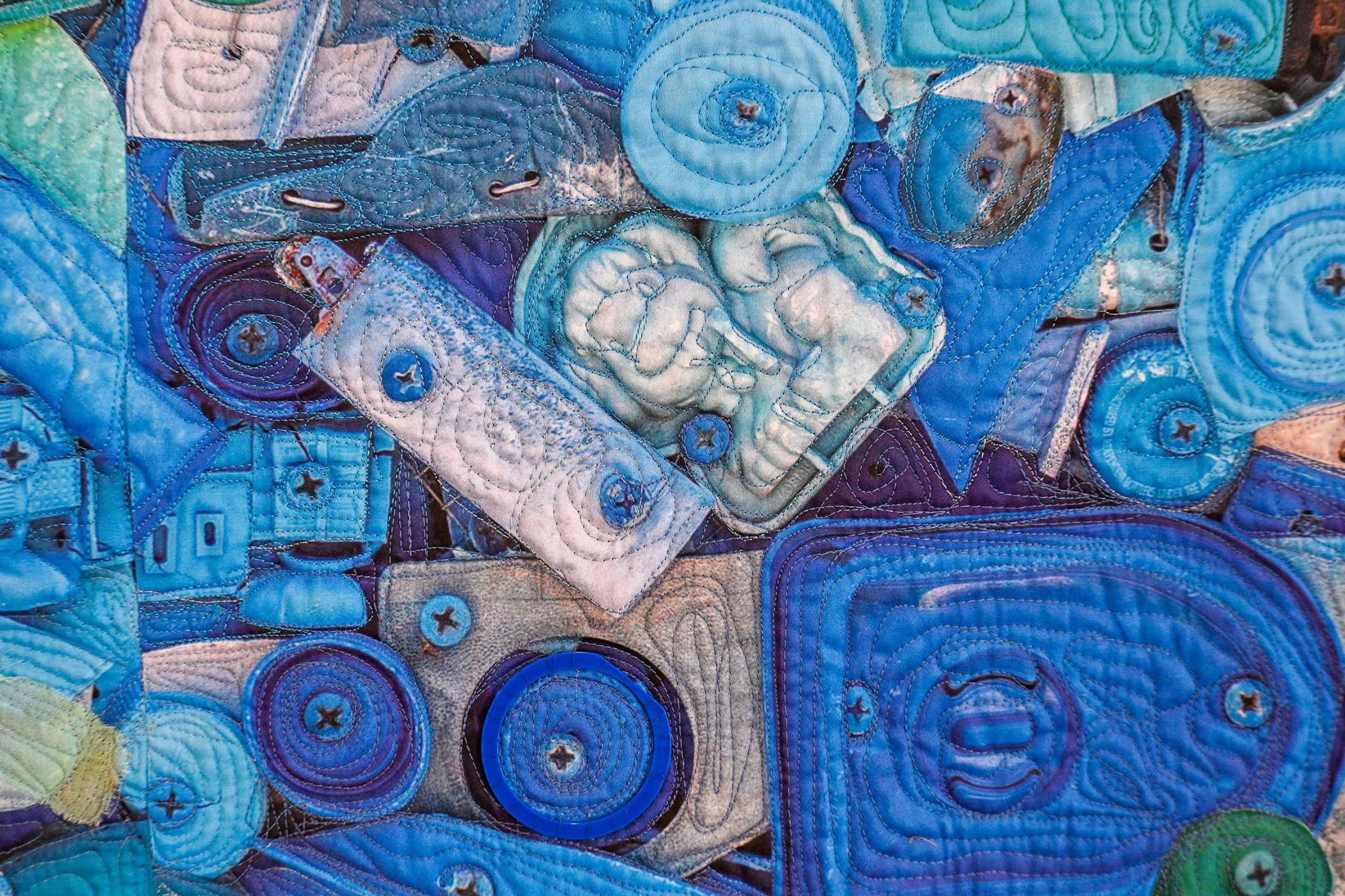 Inspired by the Washed Ashore exhibit at my local botanic gardens, this piece is made from trash collected on the beach and camouflaged into art. Lost and Found is a section of a fish sculpture that’s like an I Spy game. Can you find the toothbrush? The lighters? Chapstick? How many bottle caps can you locate?