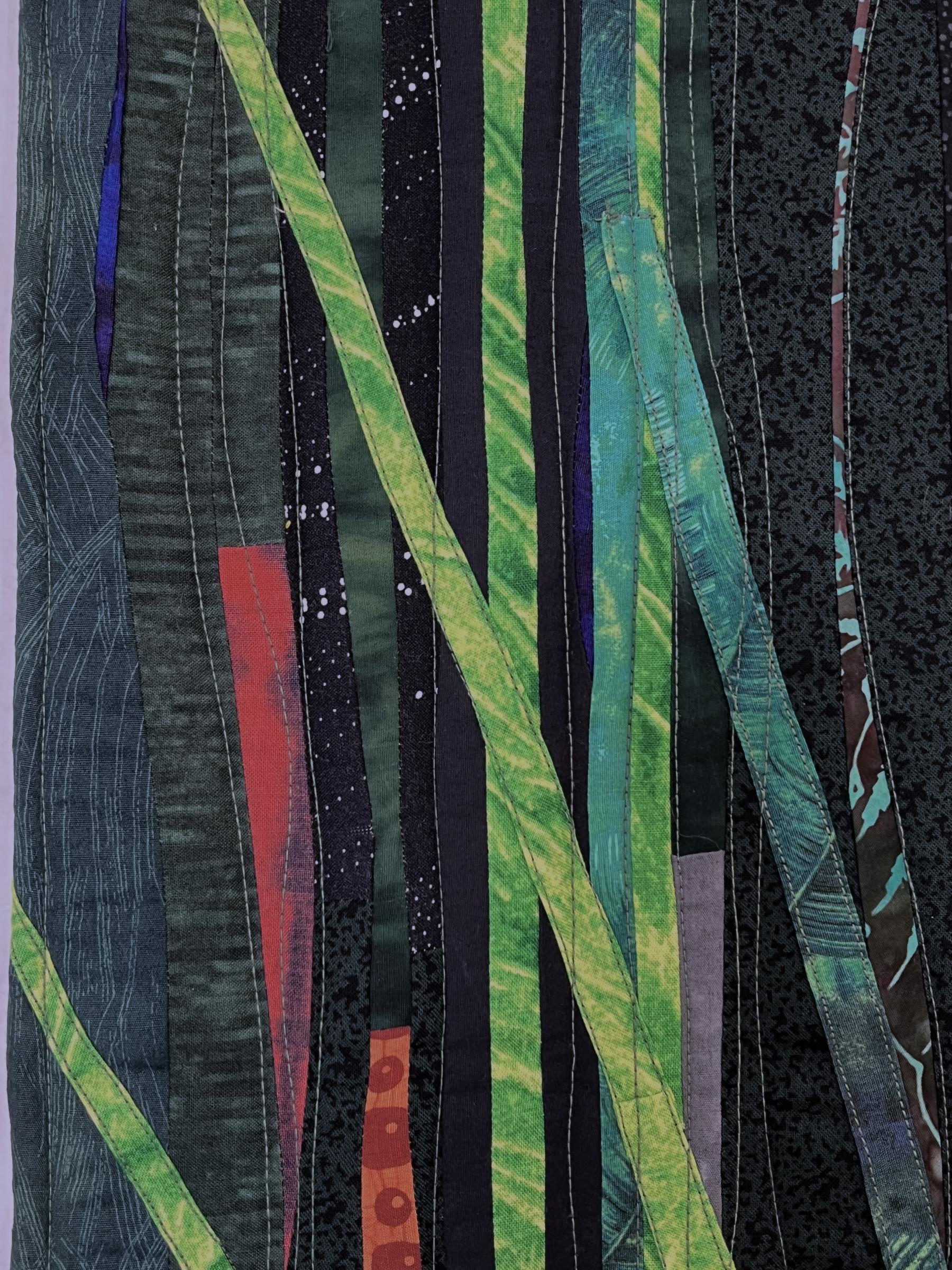 Cottons, including hand dyes, African; batting, Pellon stiffener; texturing threads
