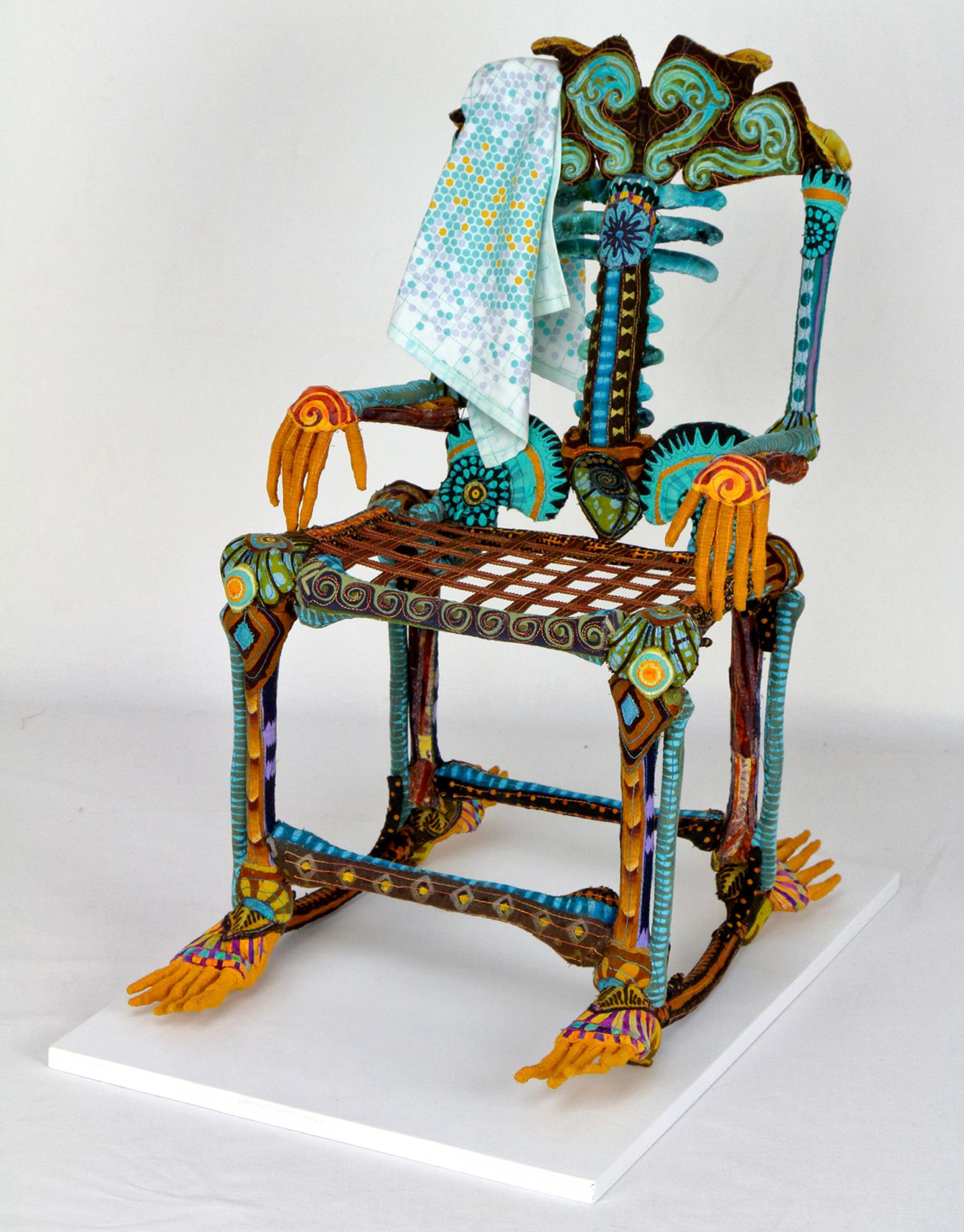 My work often conflates contradictory ideas and impulses into a single image. Bones are a powerful symbol that evoke human mortality and human history. Heirlooms, a new series of domestic objects made of cloth-covered bones, examines daily life in the context of human fragility--as well as the continuity of generations.