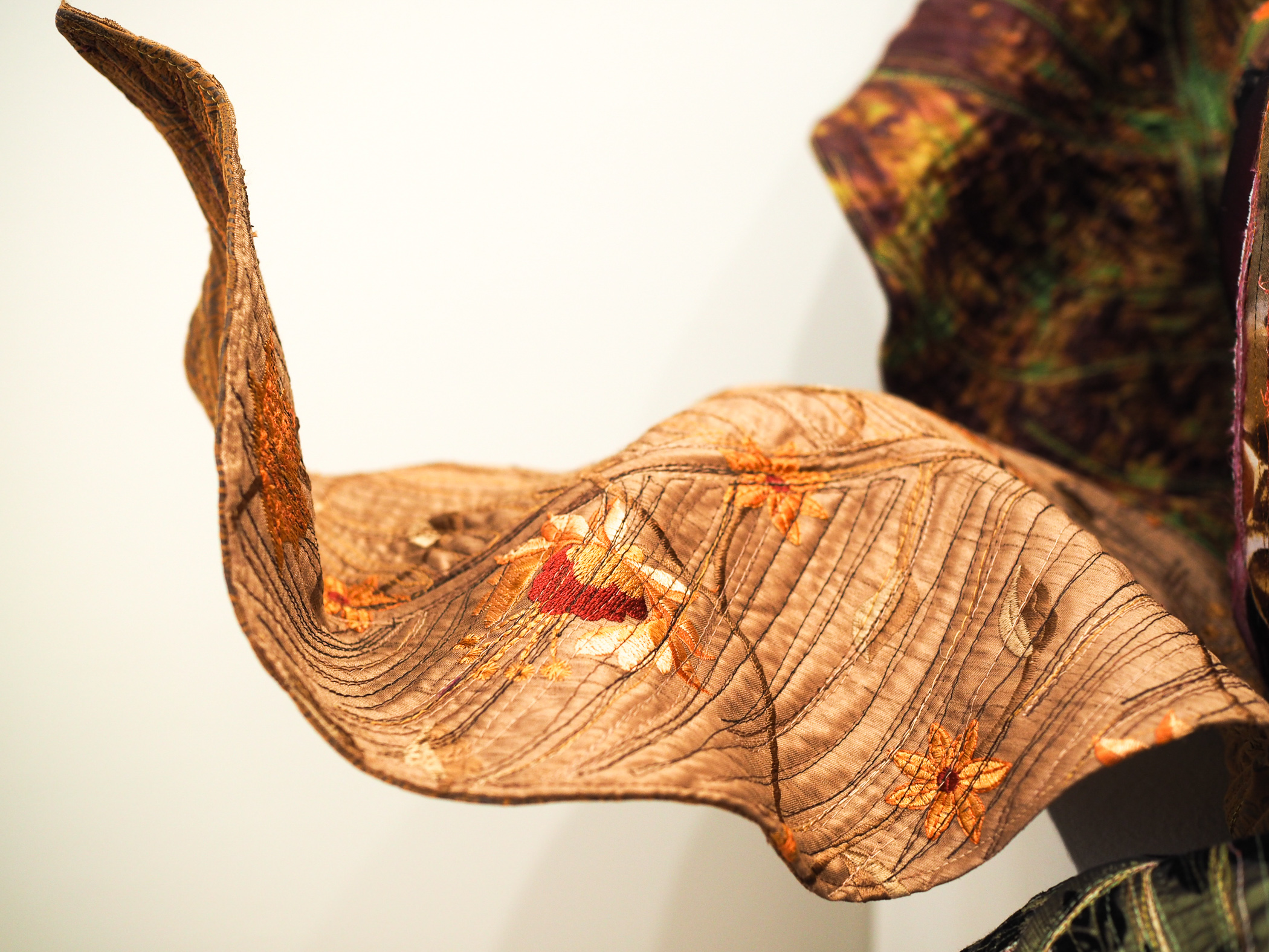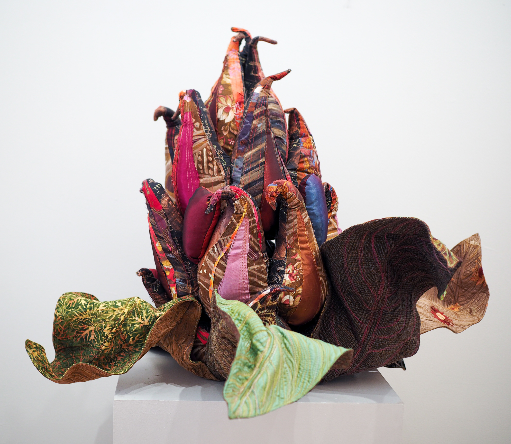 The Magnolia Grandiflora's seed pod is hard & unforgiving when stepped on. Over time, my quilts have become more three-dimensional. With this piece, I embraced the sculptural form wholeheartedly. The seed pod form has inspired the last 5 pieces of this series; bringing it to life in a soft medium. Nicknamed for F. Scott Fitzgerald.