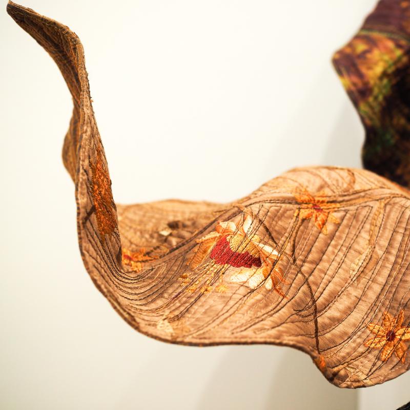 Recycled designer samples, cotton, polyester, acrylic & vinyl textiles, aluminum wire, polyester stuffing
