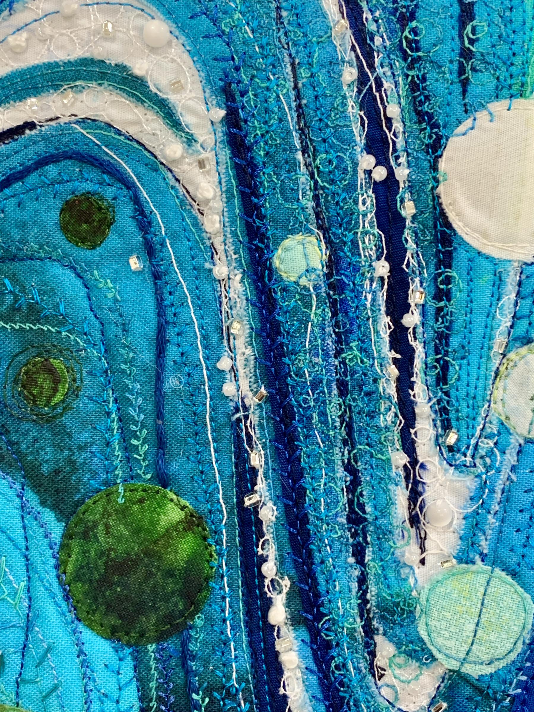 Raw edge applique, hand and machine embroidery, beading